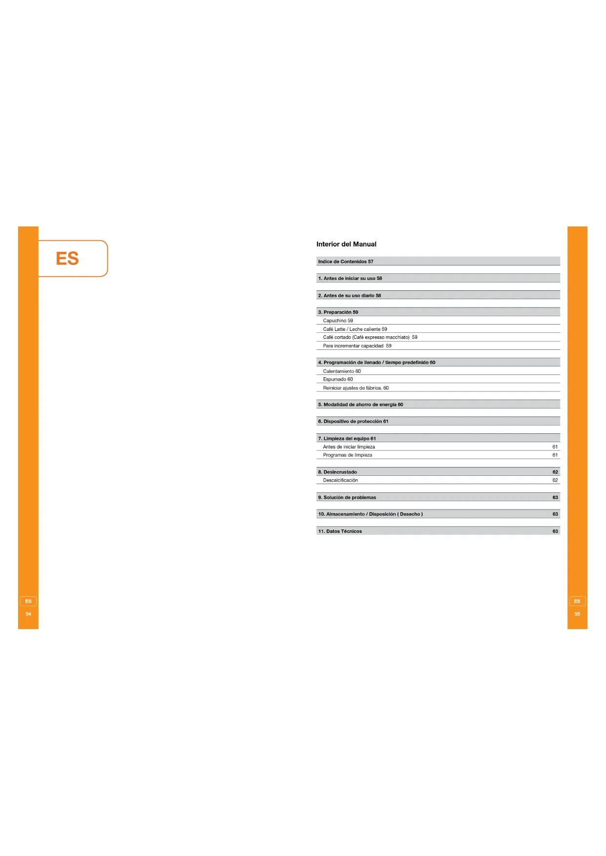 Calentamiento 60 Espumado 60 Reiniciar ajustes de fábrica. 60