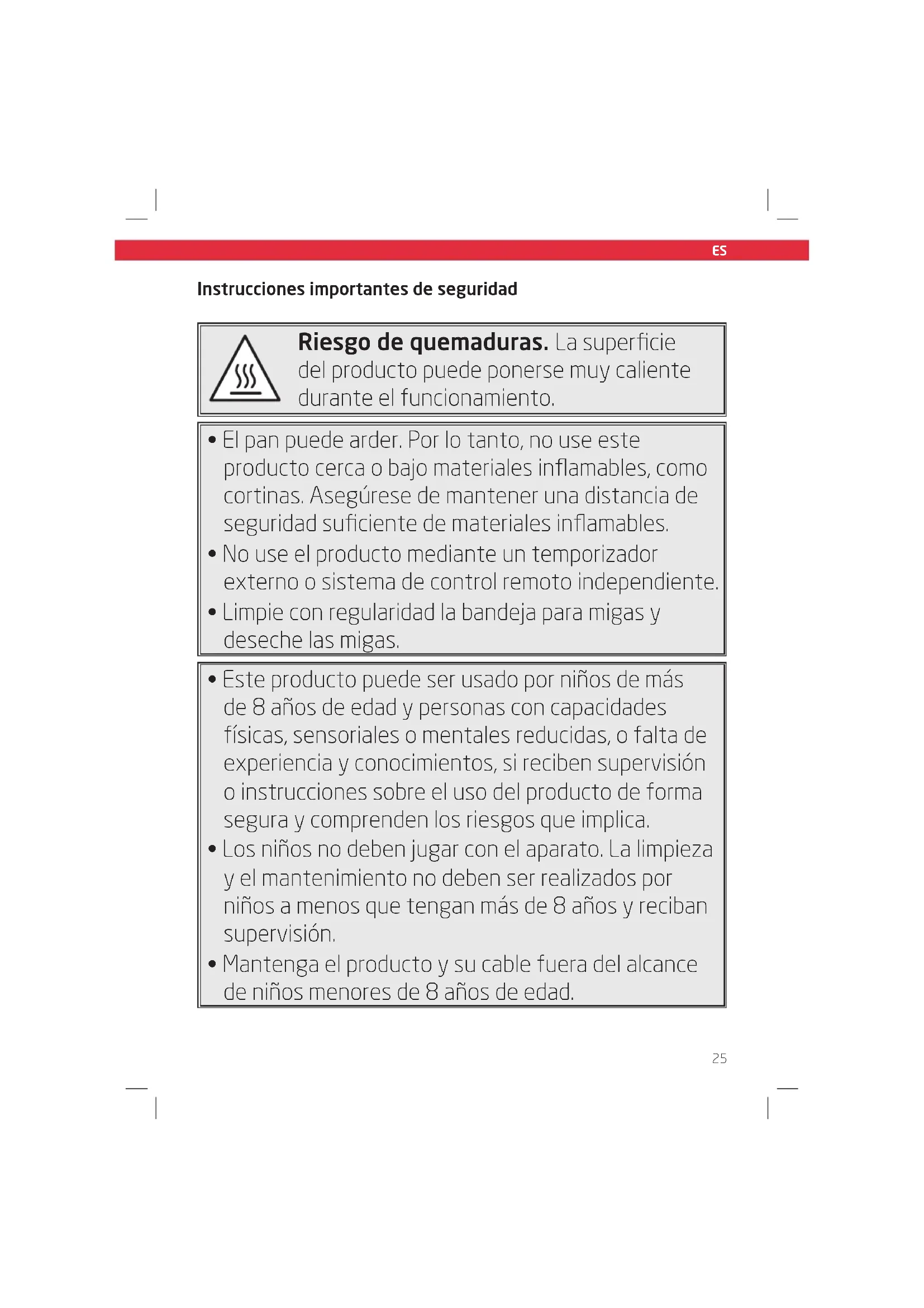 - Atención. No ponga pan, bollos ni cruasanes sobre la tostadora para calentarlos Instrucciones de seguridad29