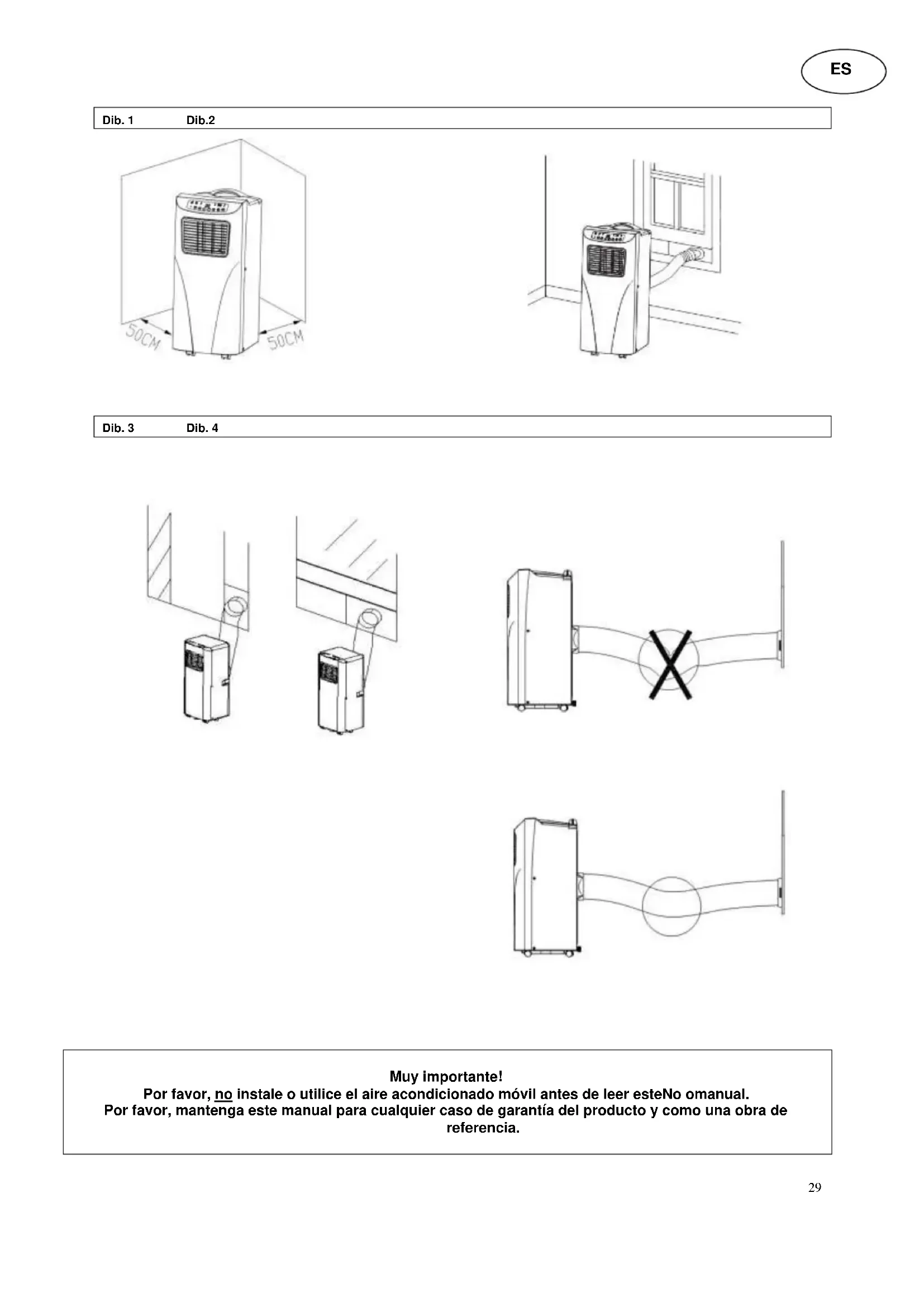 Muy importante! Por favor, no instale o utilice el aire acondicionado móvil antes de leer esteNo omanual. Por favor, mantenga este manual para cualquier caso de garantía del producto y como una obra de referencia.