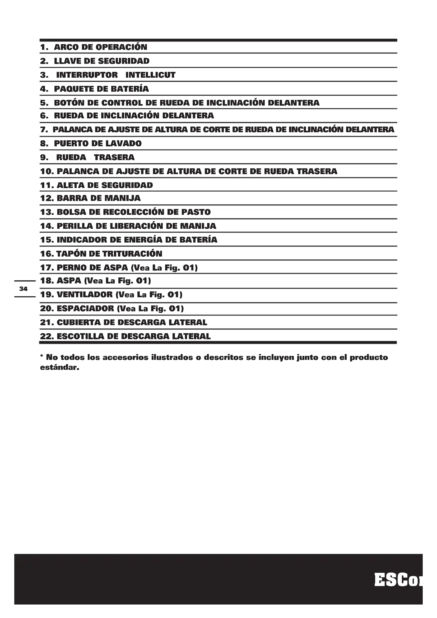 - No todos los accesorios ilustrados o descritos se incluyen junto con el producto estándar.35 ESCortacésped sin cables 3 en 1