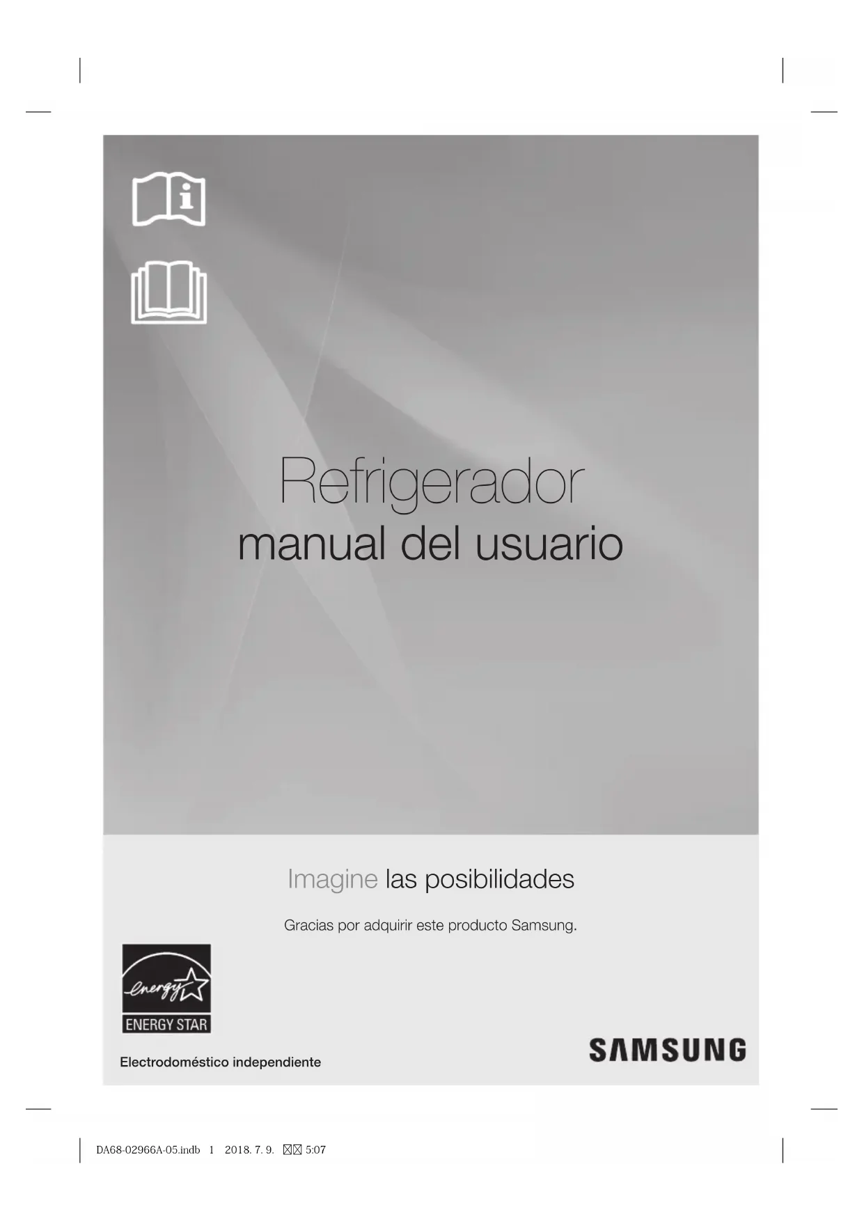 - Se deberá vigilar a los niños para asegurarse de que no jueguen con el refrigerador. - Aleje los dedos de los puntos de agarre. : Los espacios entre las puertas y el gabinete son inevitablemente pequeños. Abra las puertas con cuidado si hay niños cerca. DA68-02966A-05.indb5 2018.7.9.5:07Español - 6