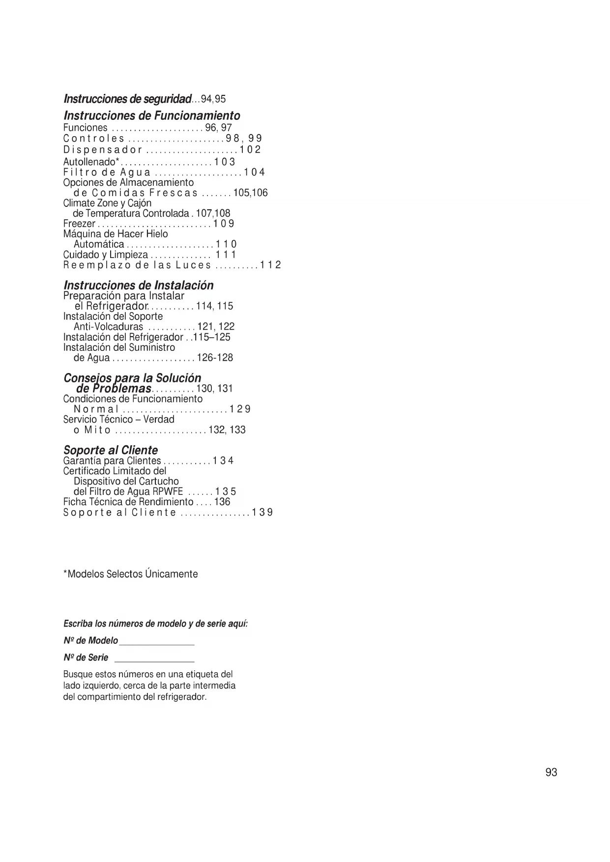 Daños sobre el acabado, tales como óxido sobre la superficie, deslustres o manchas pequeñas no informadas dentro de las 48 horas luego de la entrega. ■ Reemplazo del cartucho del filtro de agua, si se incluye, debido a la presión del agua que está fuera del rango de funcionamiento específico o debido a exceso de sedimentos en el suministro de agua. ■ Reemplazo de bombillas de luz, si se incluyen, o del cartucho del filtro de agua, si se incluye, a diferencia de lo detallado anteriormente. ■ Daños ocasionados sobre el producto por accidente, incendio, inundaciones o catástrofes naturales. ■ Daños consecuentes o incidentales causados por posibles defectos de este producto. ■ Producto no accesible para brindar el servicio requerido.