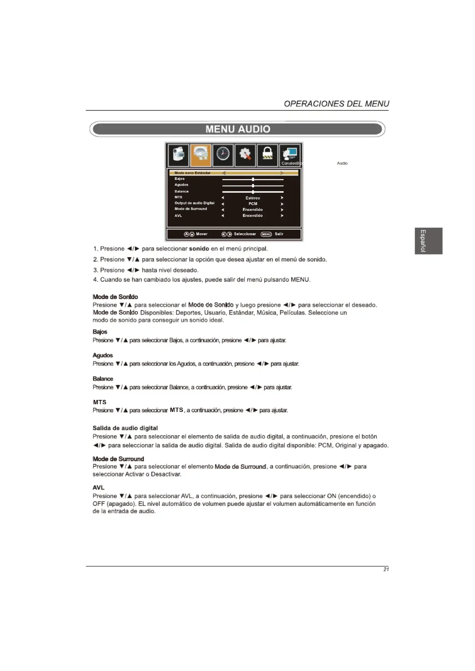 N/A MPAA CanalesBioqueoOpcionesHoraAudioImagen Mover Seleccionar Salir Inglés canadiense Apagado Apagado Francés canadiense CanalesBioqueoOpcionesHoraAudioImagen Mover Seleccionar SalirFuente Senal Fuente Senal Fuente Senal