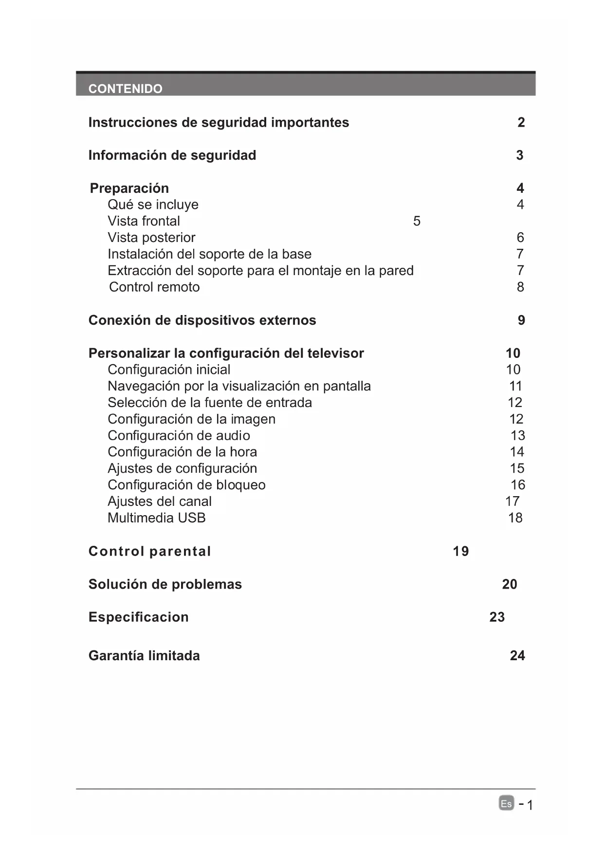 | No hayImagen ni sonido | · Compruebe si el广播电视 está encendido. · Intente con otro canal. El problema possible ser causado por la emisora. | |
