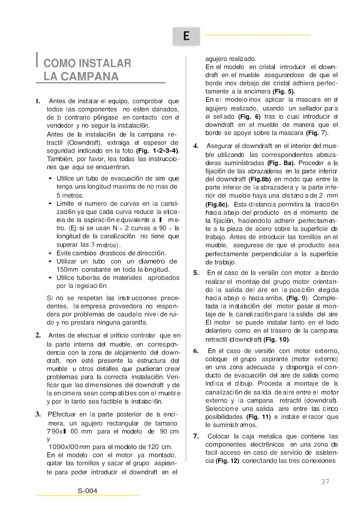 6ATENCI6N& La instalaci6n tiene que respetar las normas vigentes por lo que concierne a la ventila- ci6n de los locales cerrados. Concretamen- te, el aire evacuado, no tiene que ser con- ducido por un conducto utilizado para descarga de los humos o de aparatos que utilicen gas u otro combustible. Bloqueo de la valvula sin retorno
