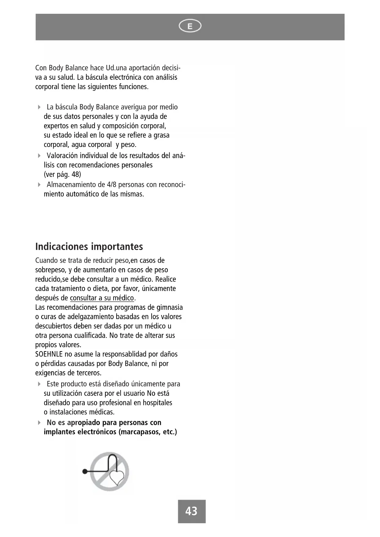 SOEHNLE no asume la responsabilidad por daños o perdidas causadas por Body Balance, ni por exigencias de terceros.