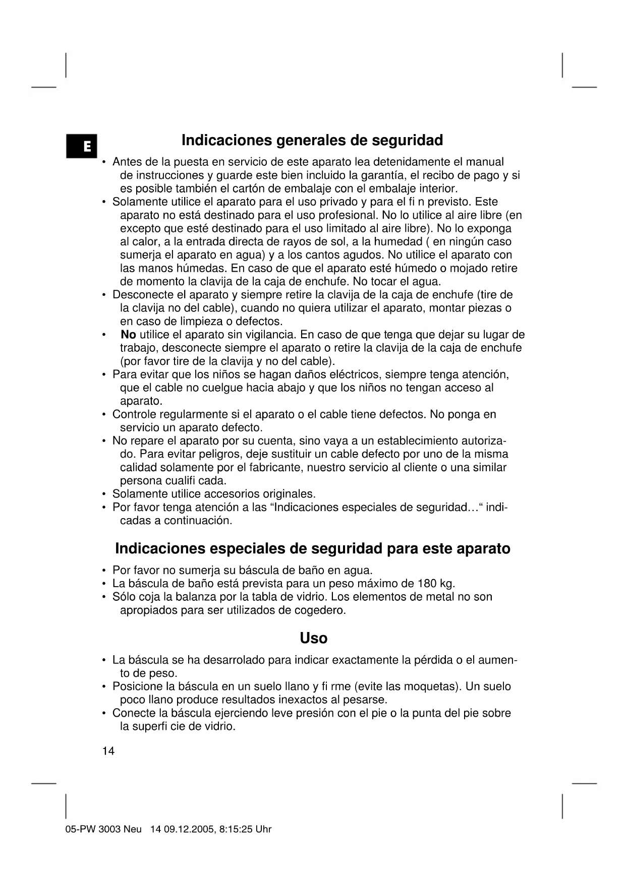 - Si el visualizador indica “Err”, el peso supera los 180 kg. 05-PW 3003 Neu 15 09.12.2005, 8:15:25 UhrE