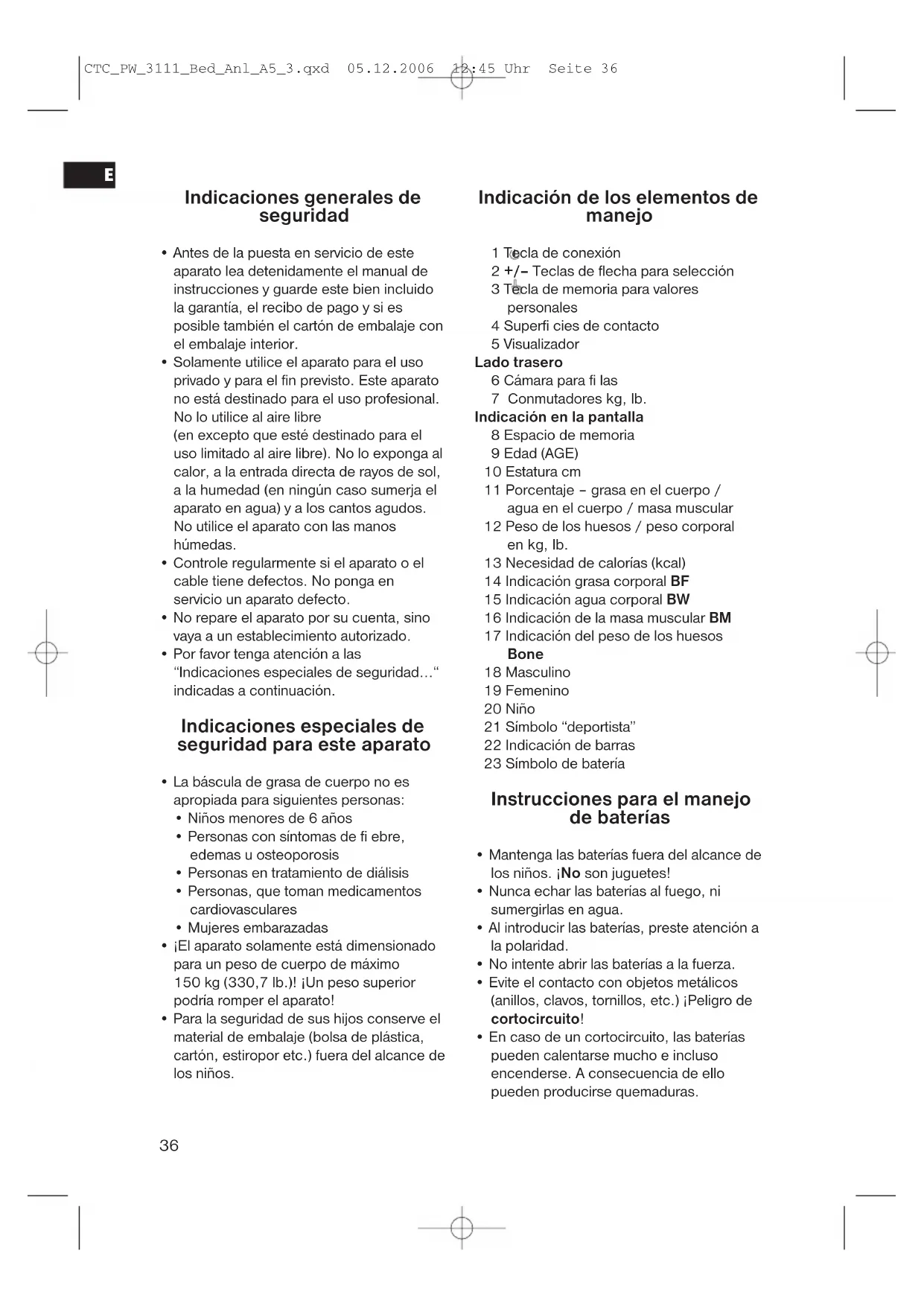 CTC_PW_3111_Bed_Anl_A5_3.qxd 05.12.2006 12:45 Uhr Seite 36• Para su seguridad durante el transporte de las baterías los polos deben cubrirse con cinta adhesiva.