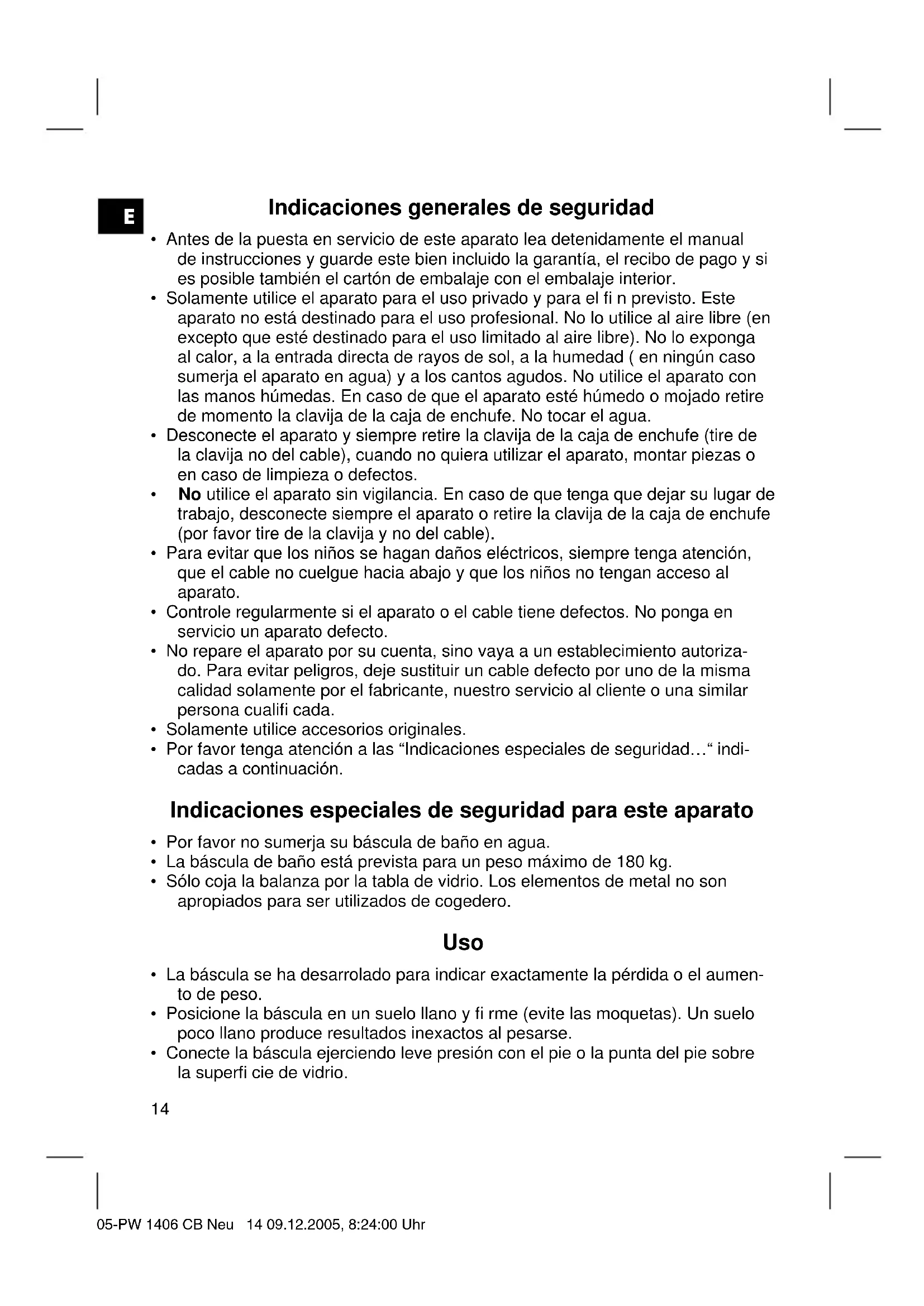 - Solamente utilise el aparato para el uso privado y para el fiñ previsto. Este aparato no está destinado para el uso profesional. No lo utilise al aire libre (en excepto que está destinado para el uso limitado al aire libre). No lo exponga al calor, a la entrada directa de rayos de sol, a la humedad (en ningún caso sumerja el aparato en agua) y a los cantos agudos. No utilise el aparato con las manos humedes. En caso de que el aparato está humedo o要去gether de momento la clavija de la caja de enchufe. No tocar el agua.