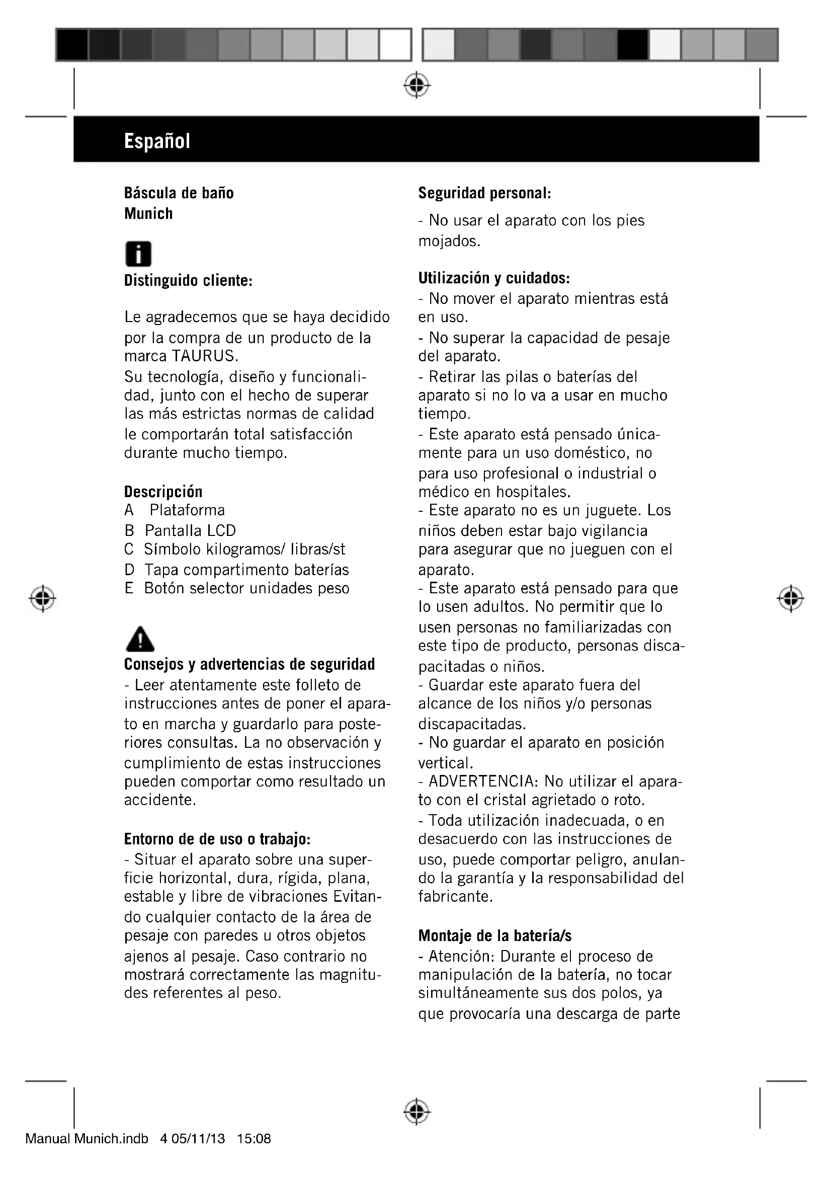 Encuentra gratis el manual del aparato Munich TAURUS en formato PDF.