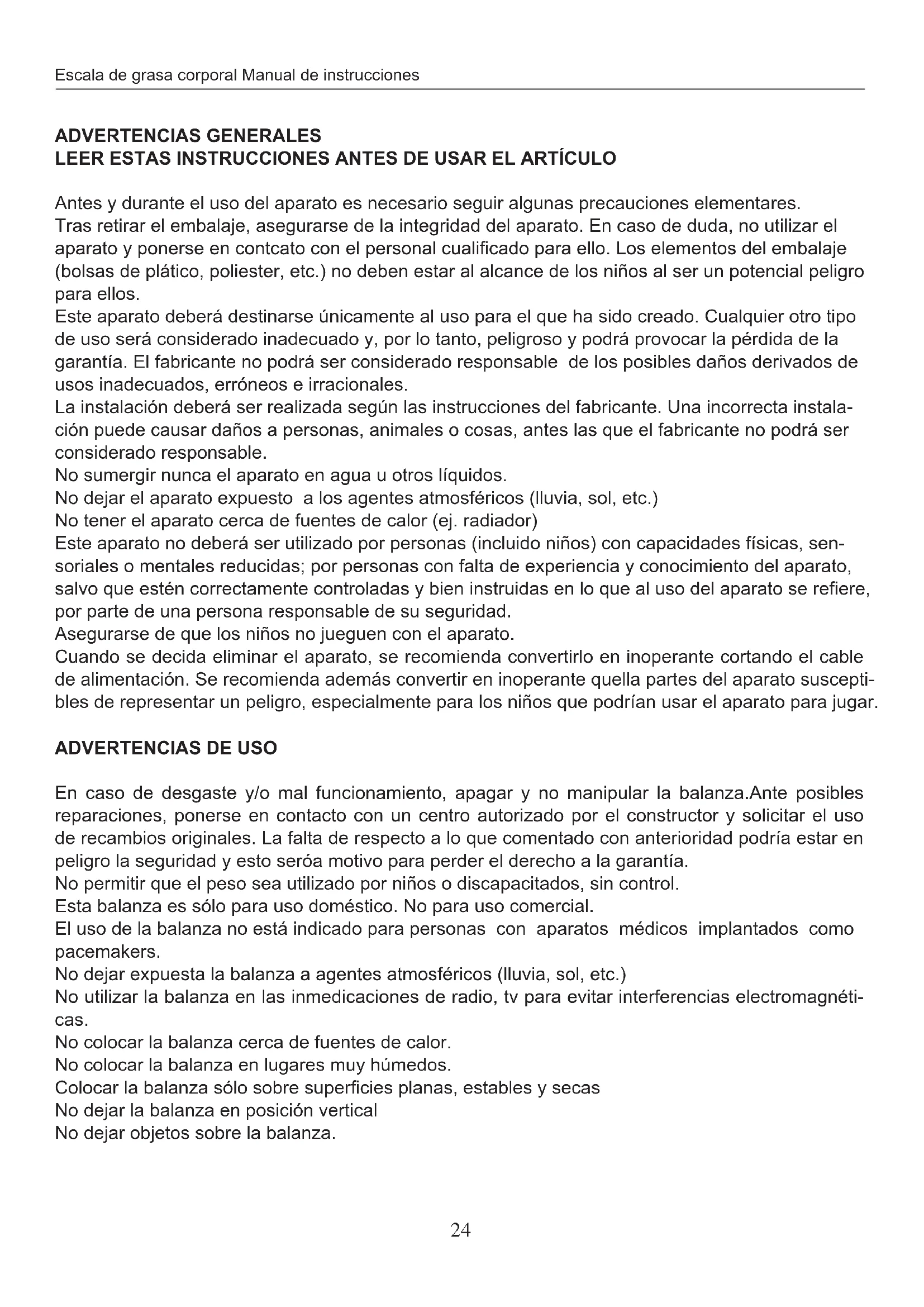 El uso de la balanza no está indicado para personas con aparatos Médicos implantados como pacemakers.