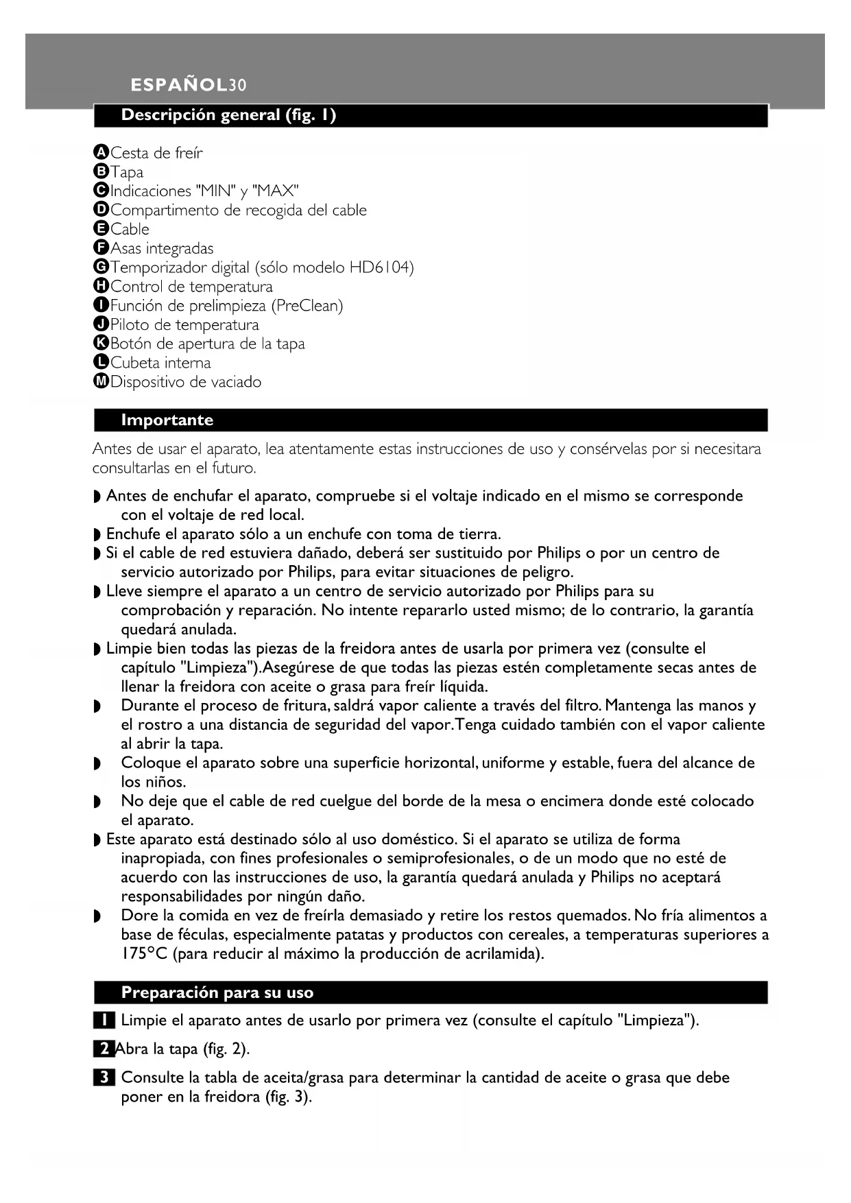 Daily Collection HD6104 - Freidora PHILIPS - Manual de uso y guía de instrucciones gratis