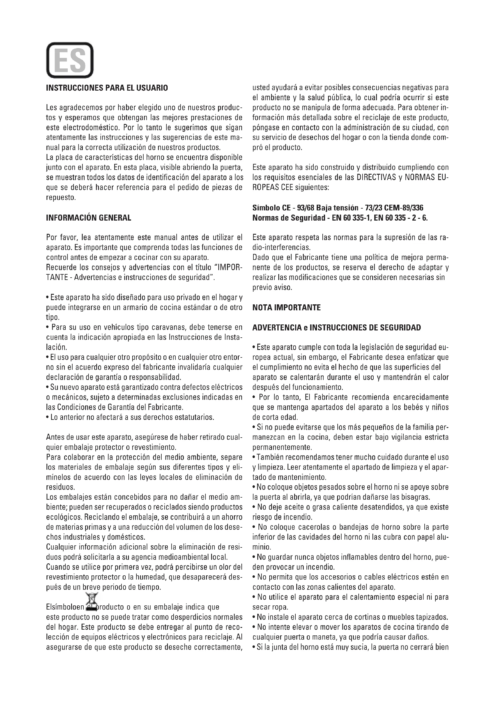 - Este aparato cumple con toda la legislación de seguridad europea actual, sin embargo, el Fabricante眼看 enfatizar que el complimiento no evita el着他 de que las superficies del aparato se calentarán durante el uso y mantenerrn el calor despues del funciona.