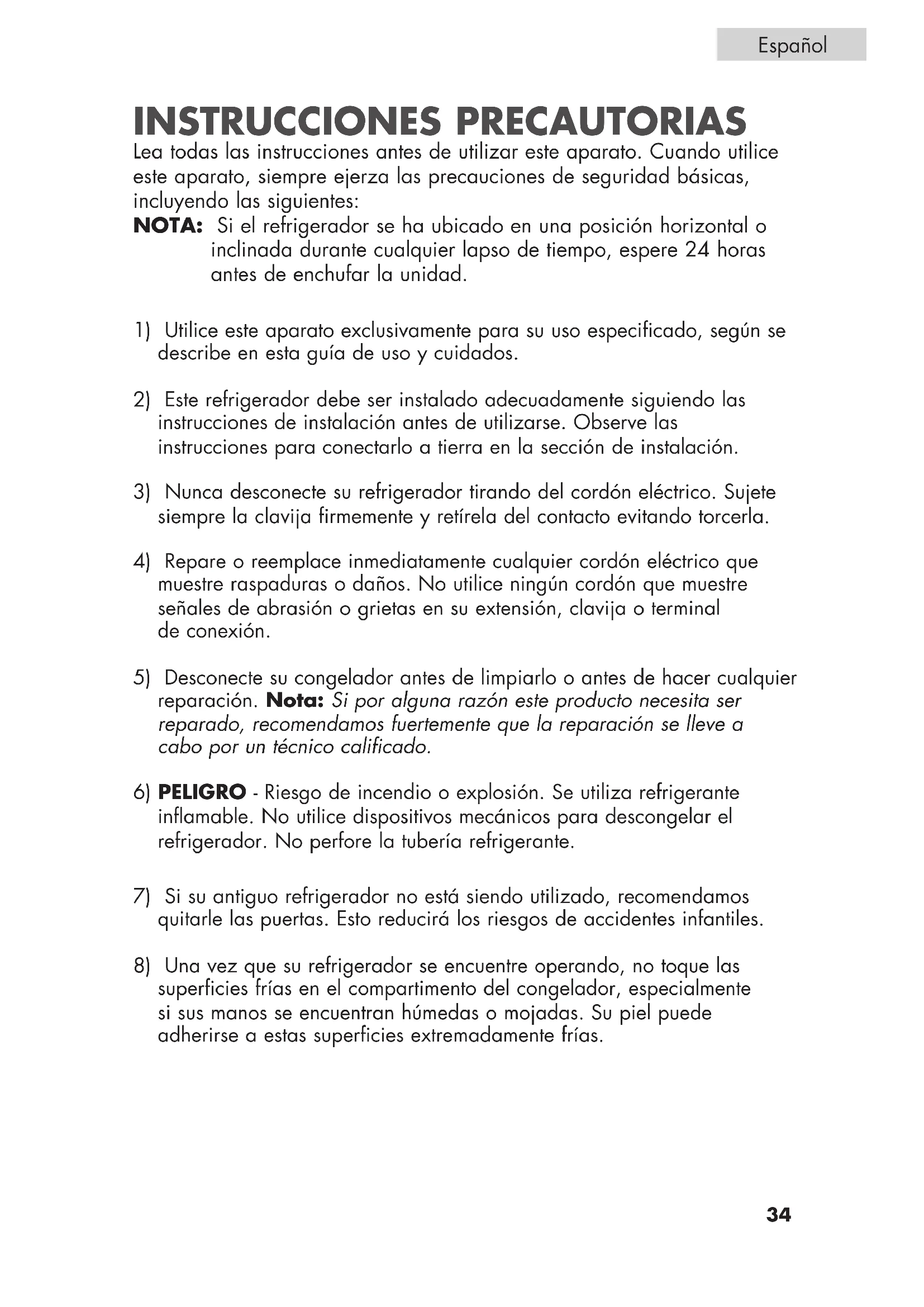 7) Si su antiguo refrigerador no está siendo utilizado, recomendamos