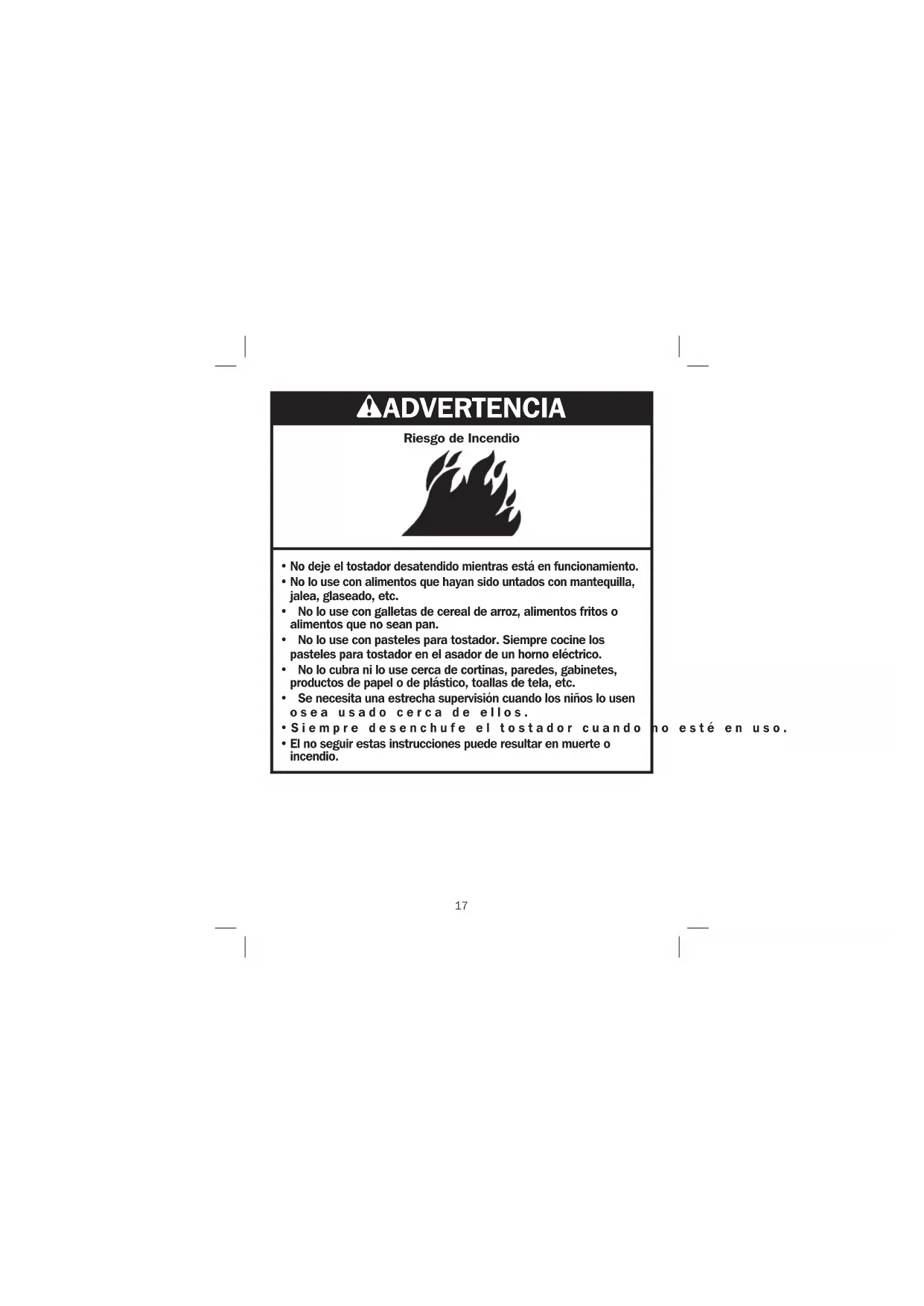 13. Puede ocurrir un incendio si la tostadora se usa para calentar