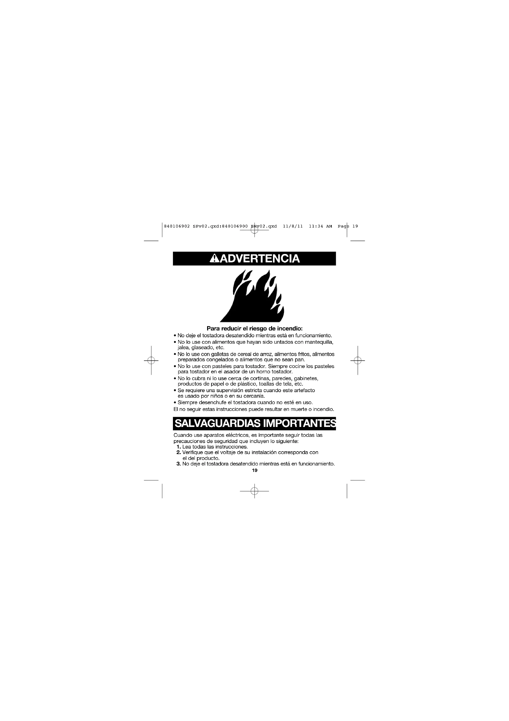 - Siempre desenchufe el tostadora cuando no esté en uso. El no seguir estas instrucciones puede resultar en muerte o incendio. wADVERTENCIA Cuando use aparatos eléctricos, es importante seguir todas las precauciones de seguridad que incluyen lo siguiente: