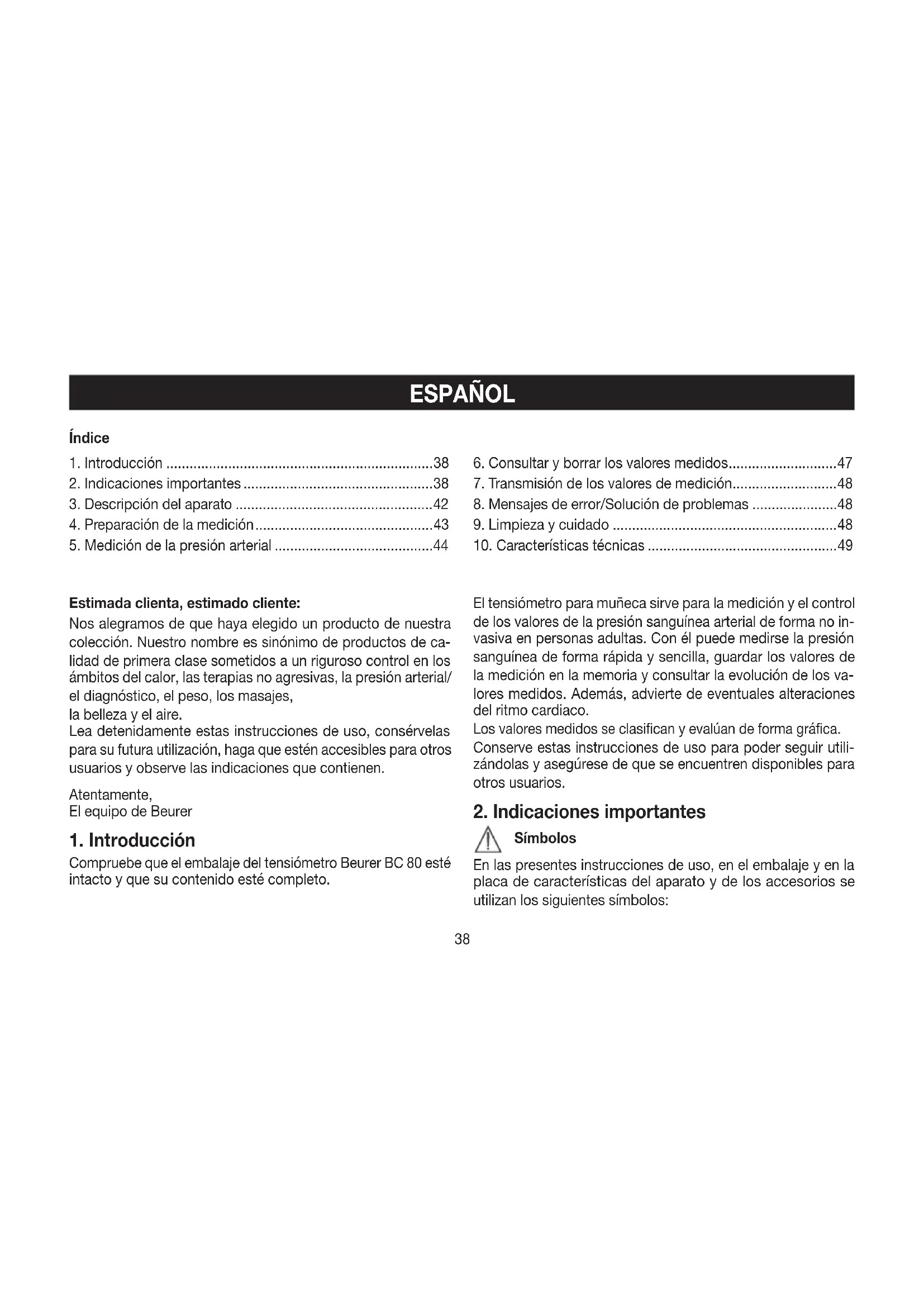 MANUAL DE USUARIO BC 80 BEURER