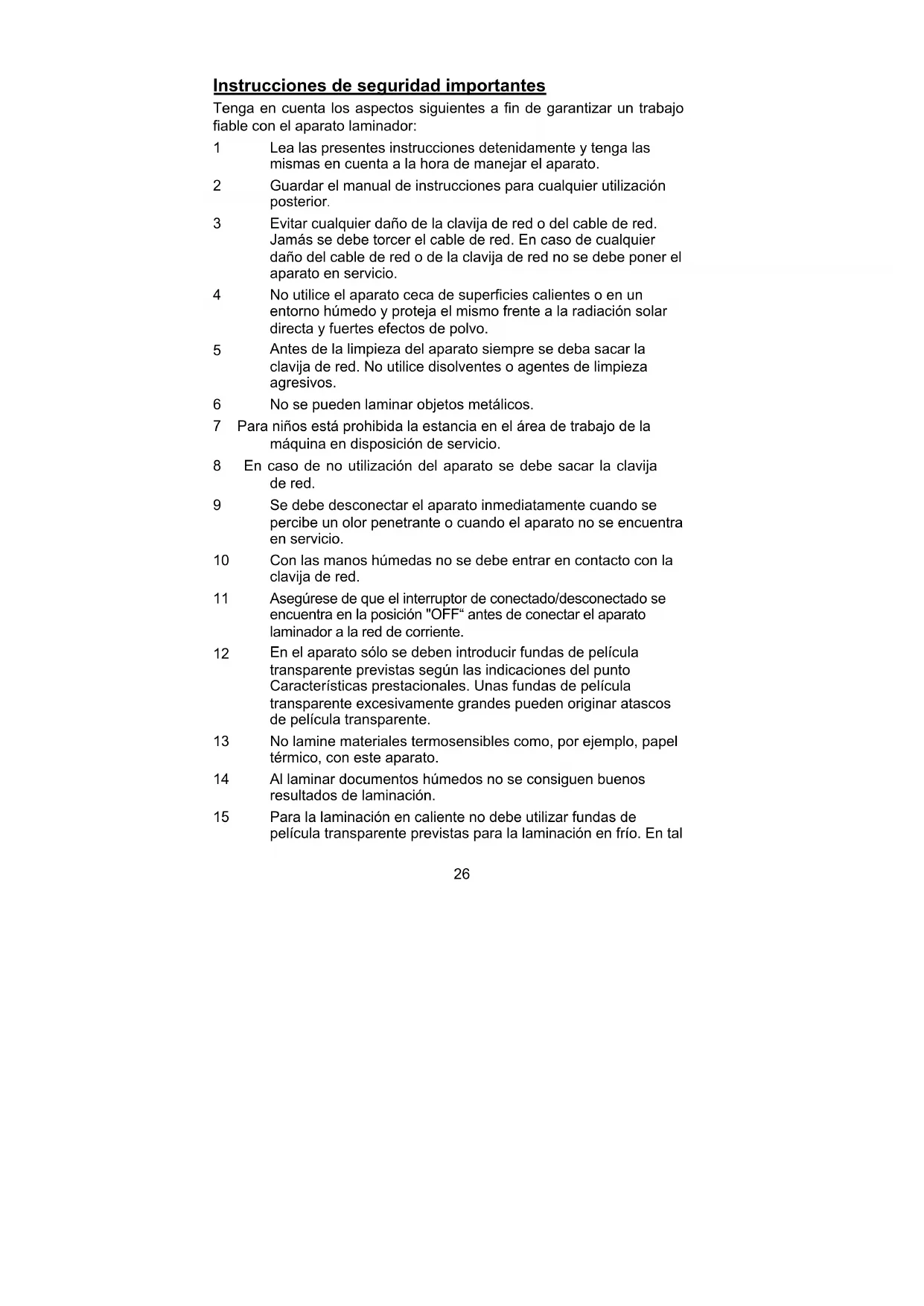 15 Para la laminación en caliente no debe utilizar fundas de película transparente previstas para la laminación en frío. En tal