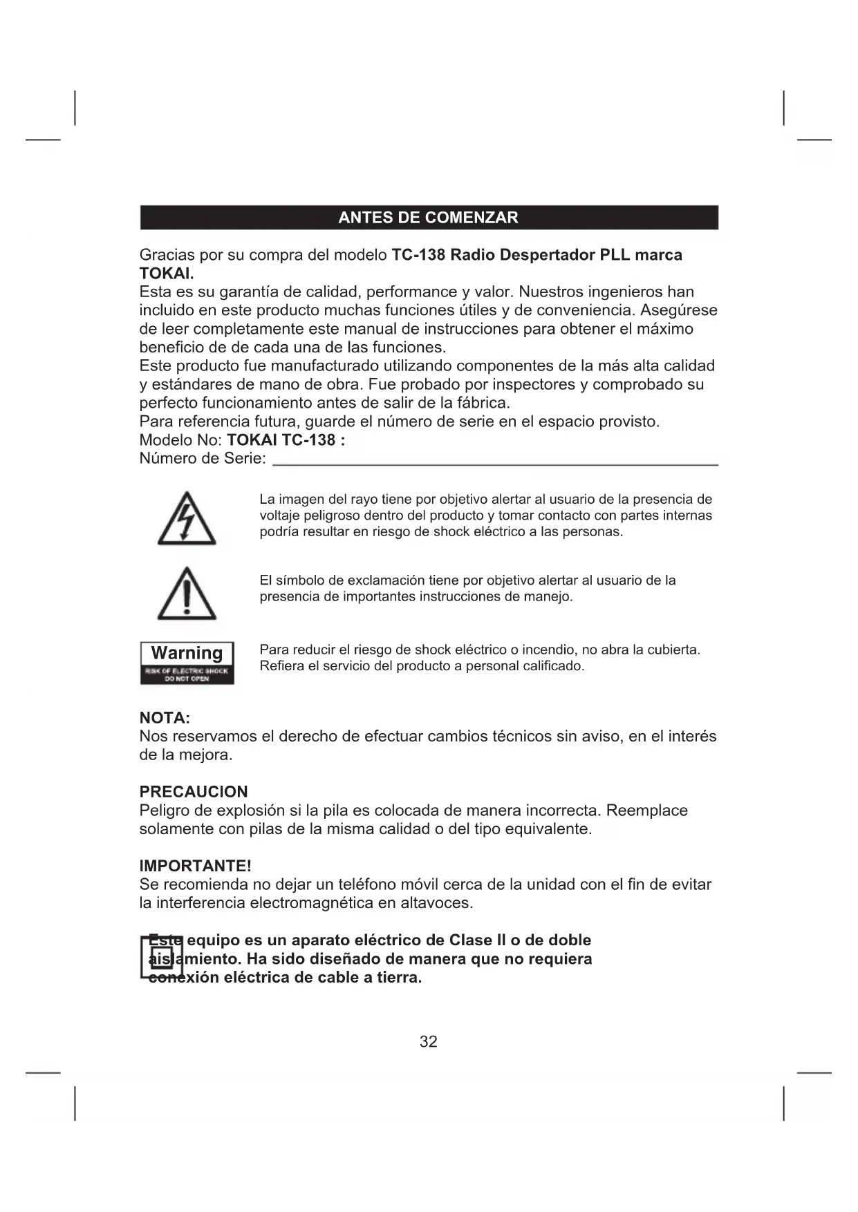 MANUAL DE USUARIO TC138 TOKAI