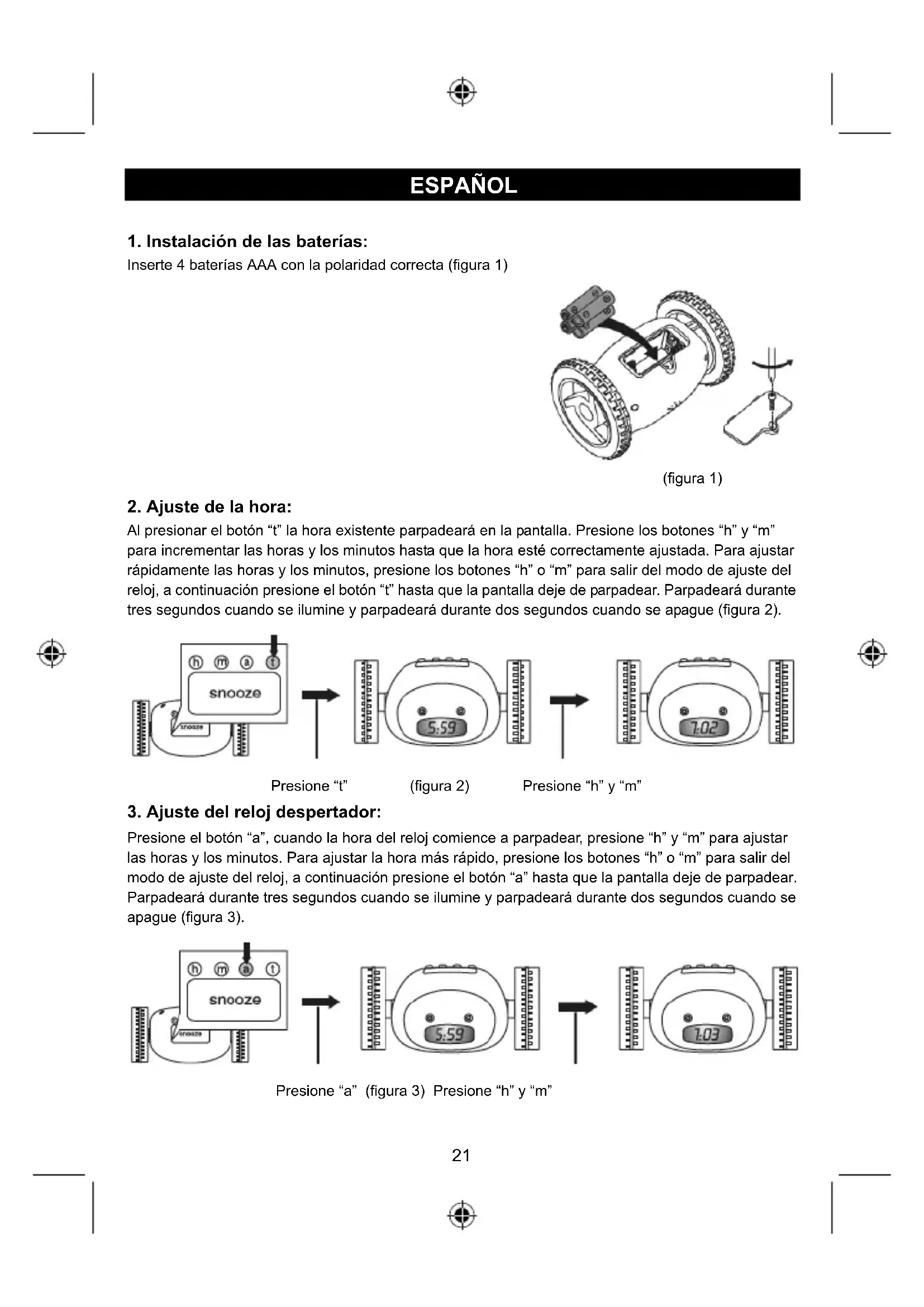 snooze Presione "t" (figura 2) Presione "h" y "m"3. Ajuste del reloj despertador: