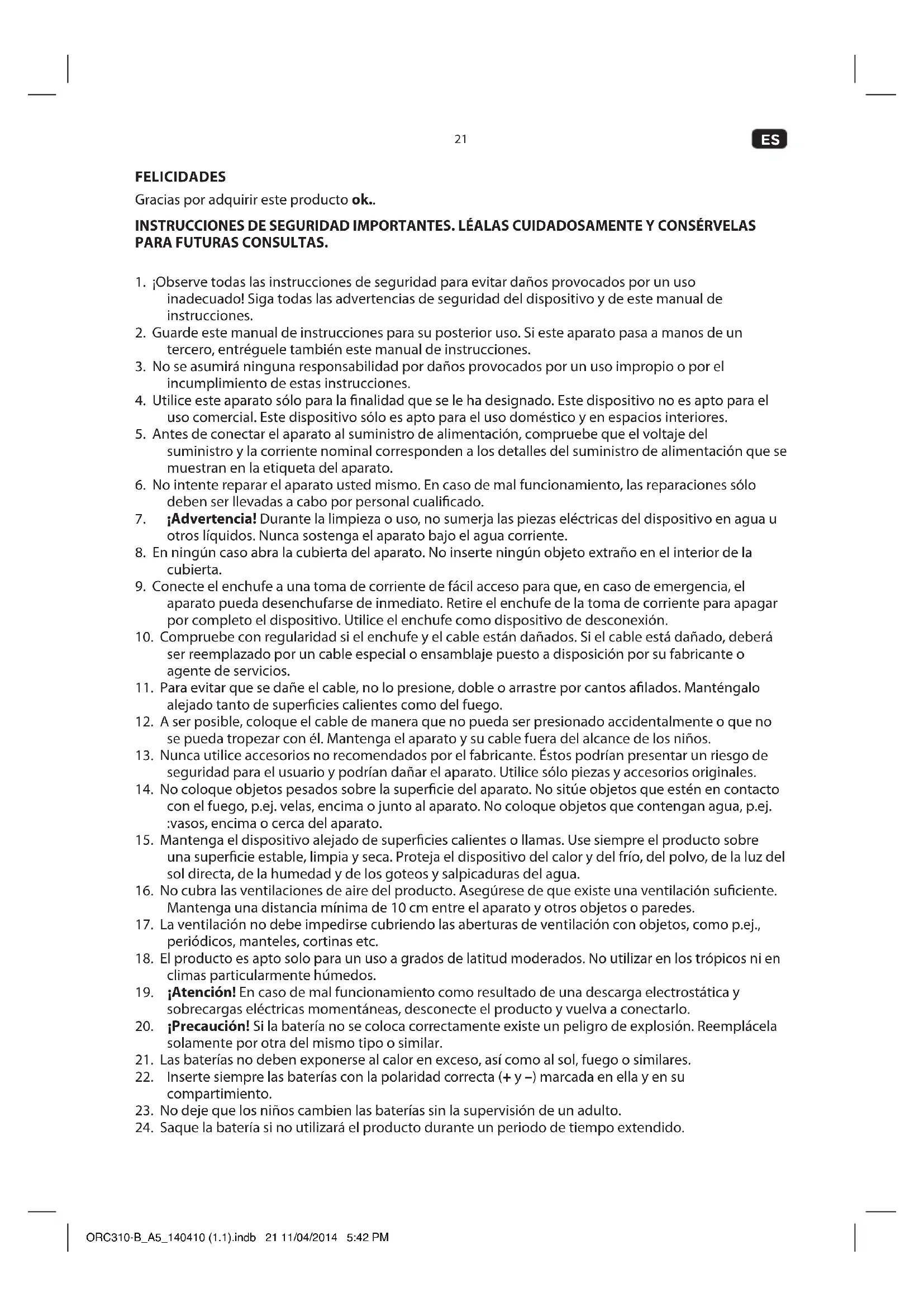 FELICIDADES Gracias por adquirir este producto ok.. INSTRUCCIONES DE SEGURIDAD IMPORTANTES. LÉALAS CUIDADOSAMENTE Y CONSÉRVELAS PARA FUTURAS CONSULTAS.