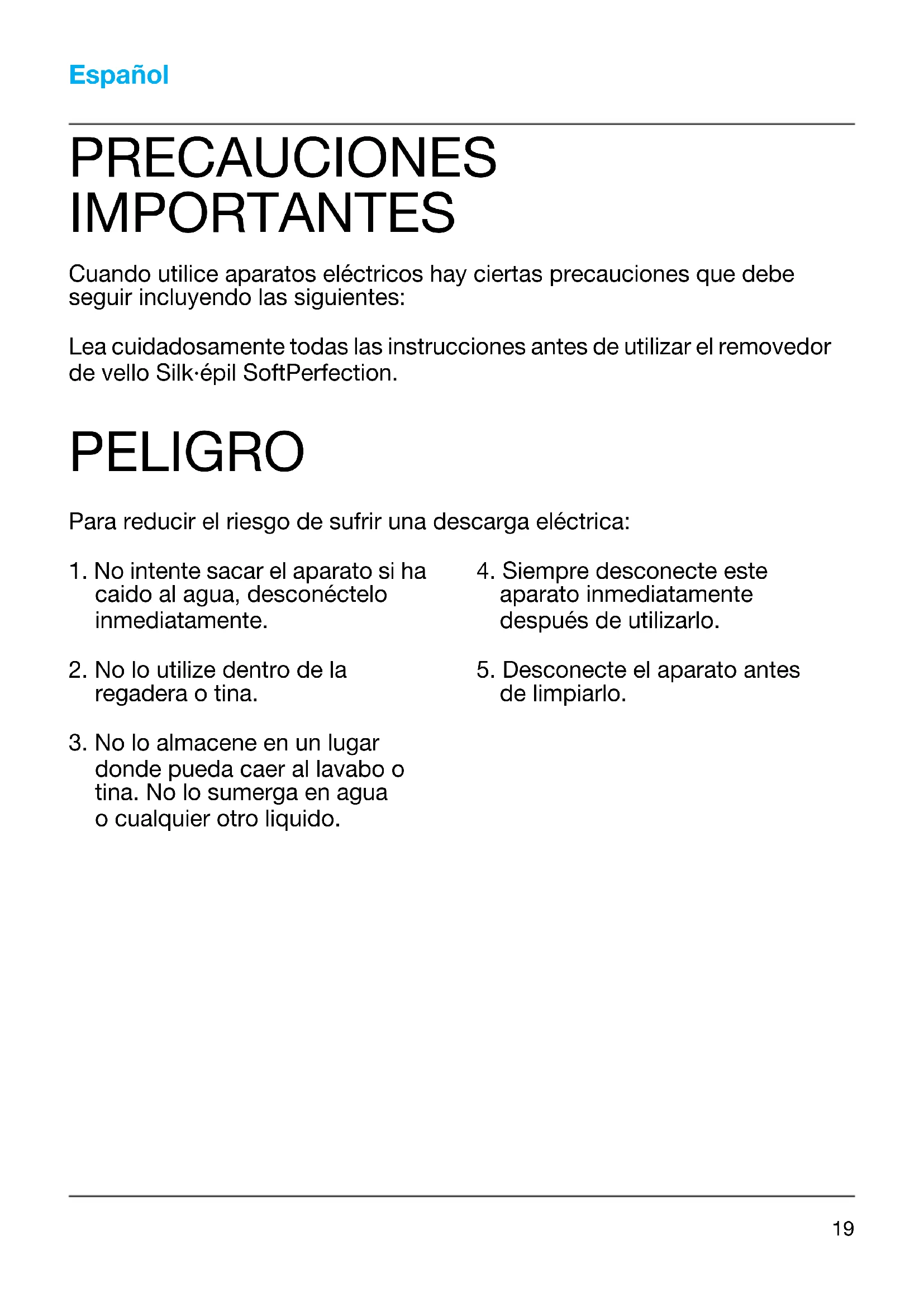 de corriente Silk·épil que se incluye en su removedor de vello Silk·épil SoftPerfection. ADVERTENCIA 5318447_3240_NA_6-24 Seite 20 Dienstag, 11. November 2003 12:28 1221 A continuación nos gustaría que se familiarizarse con el aparato y darle información útil acerca de la depilación. Por favor, antes de usar el aparato por primera vez, lea las instrucciones detenidamente. Braun Silk·épil SoftPerfection ha sido diseñada para una depilación de raíz del vello no deseado lo más eficiente, suave y fácil posible. Su sistema de depilación extrae de raíz el vello, dejando su piel suave durante semanas.