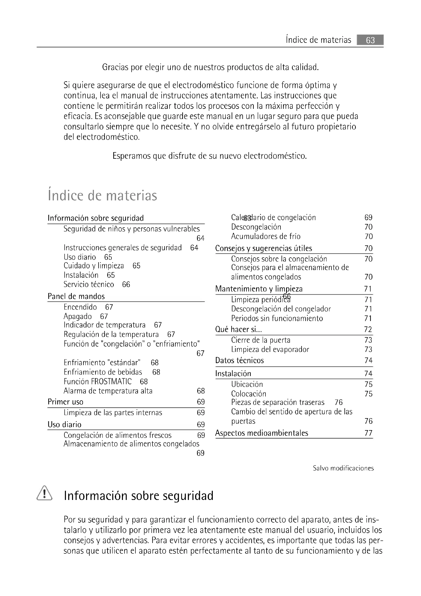 | Instrucciones generales de seguridad | 64 |