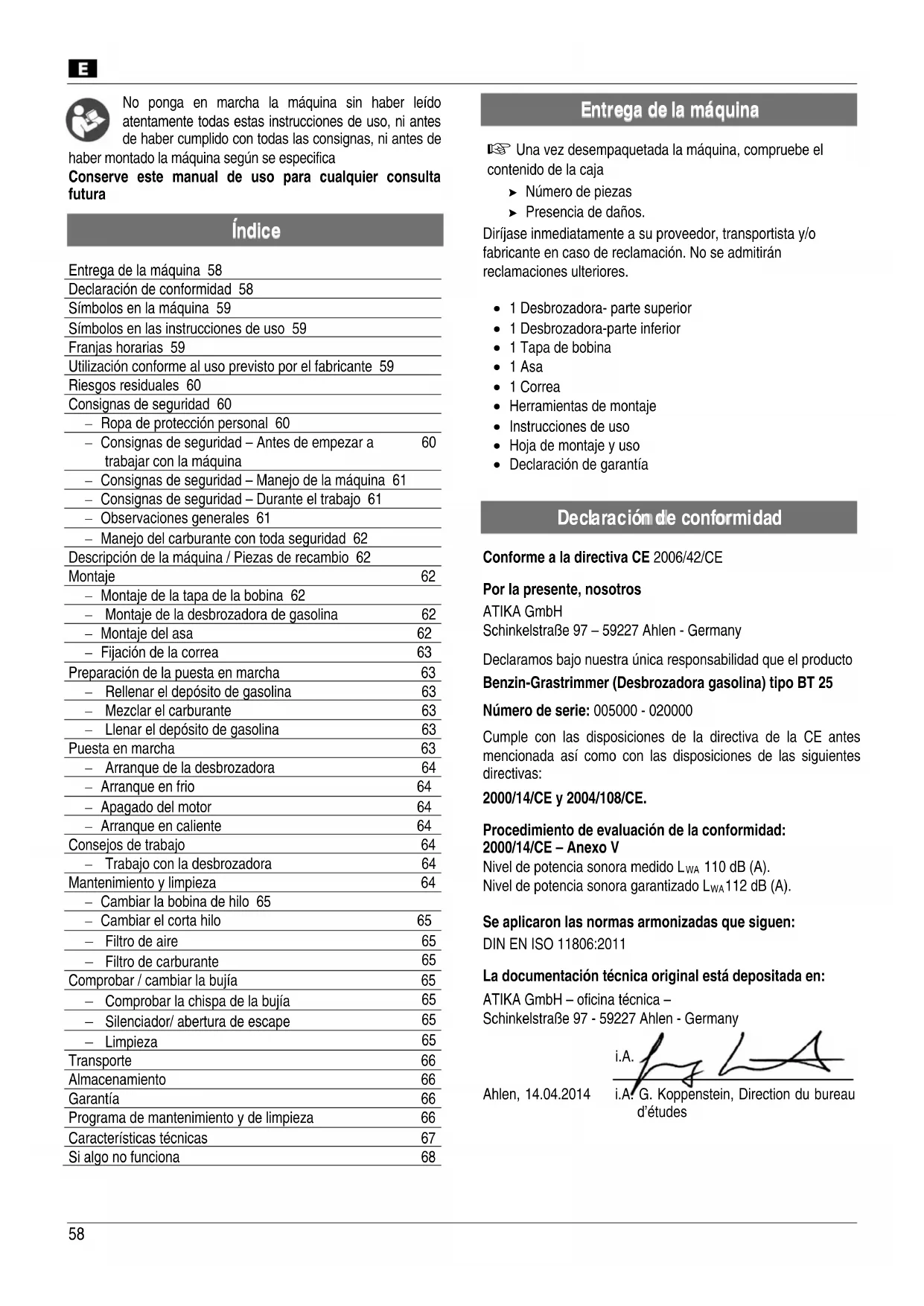 Descarga las instrucciones para tu Cortadora de césped en formato PDF gratis! Encuentra tus instrucciones BT 25 - ATIKA y toma tu dispositivo electrónico nuevamente en la mano. En esta página están publicados todos los documentos necesarios para el uso de su dispositivo. BT 25 de la marca ATIKA.