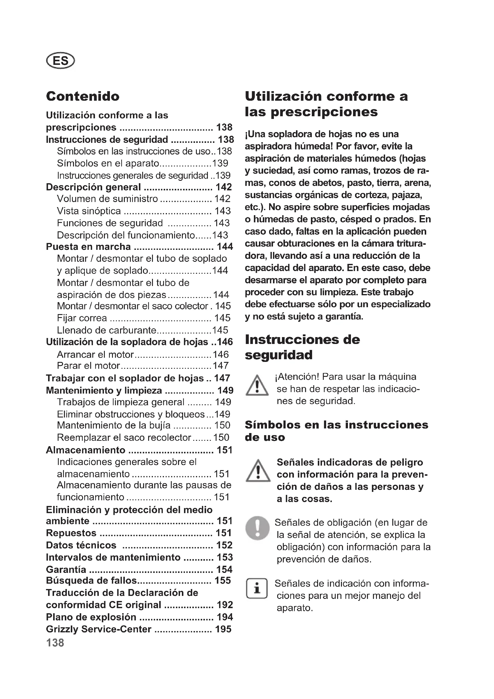 ES Traducción del manual de instrucciones original .....138