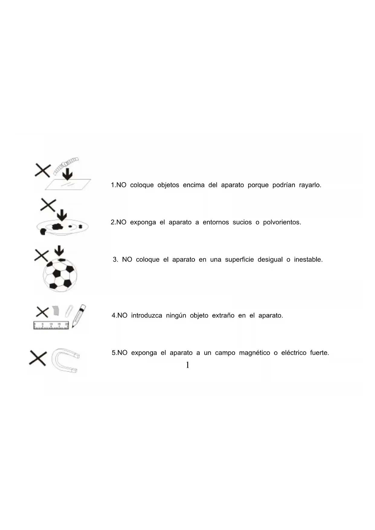 1.NO coloque objetos encima del aparato porque podrjan rayarlo.