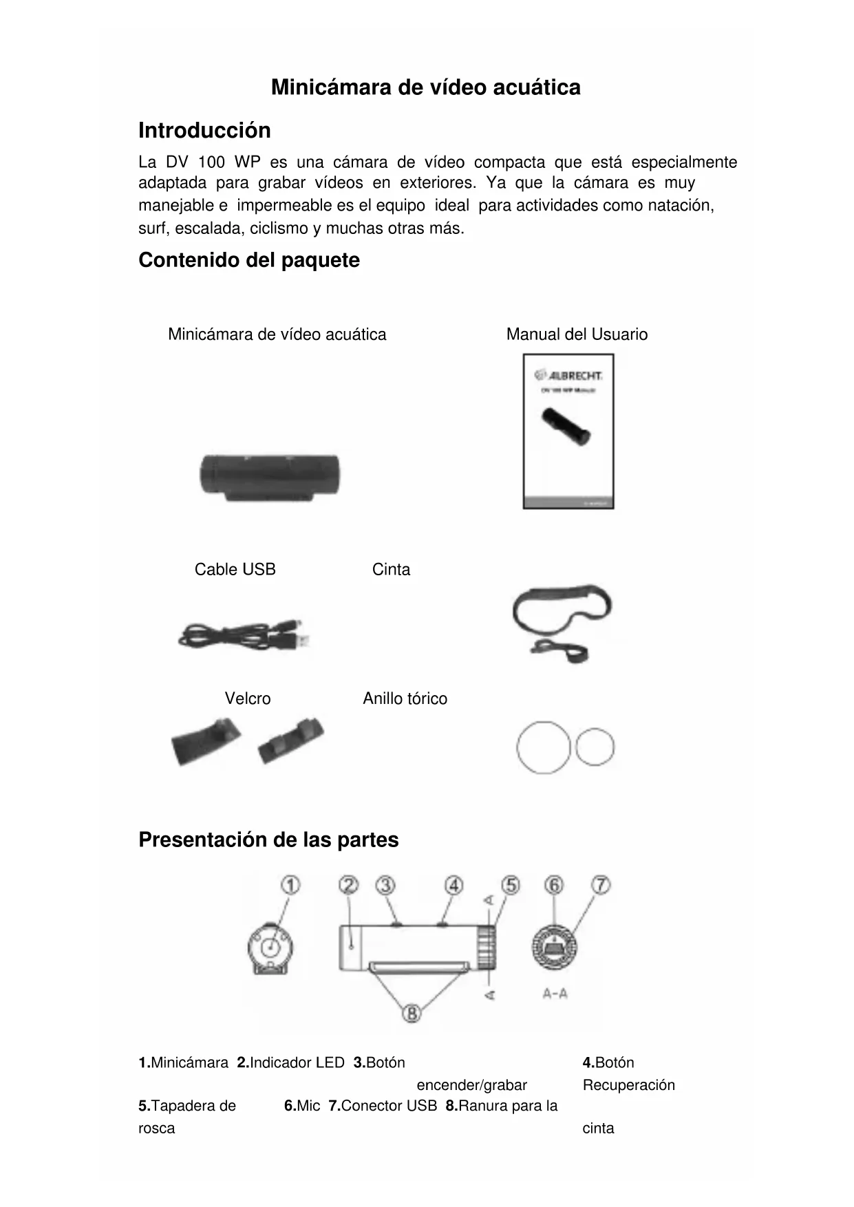 DV 100 WP - Cámara deportiva ALBRECHT - Manual de uso y guía de instrucciones gratis