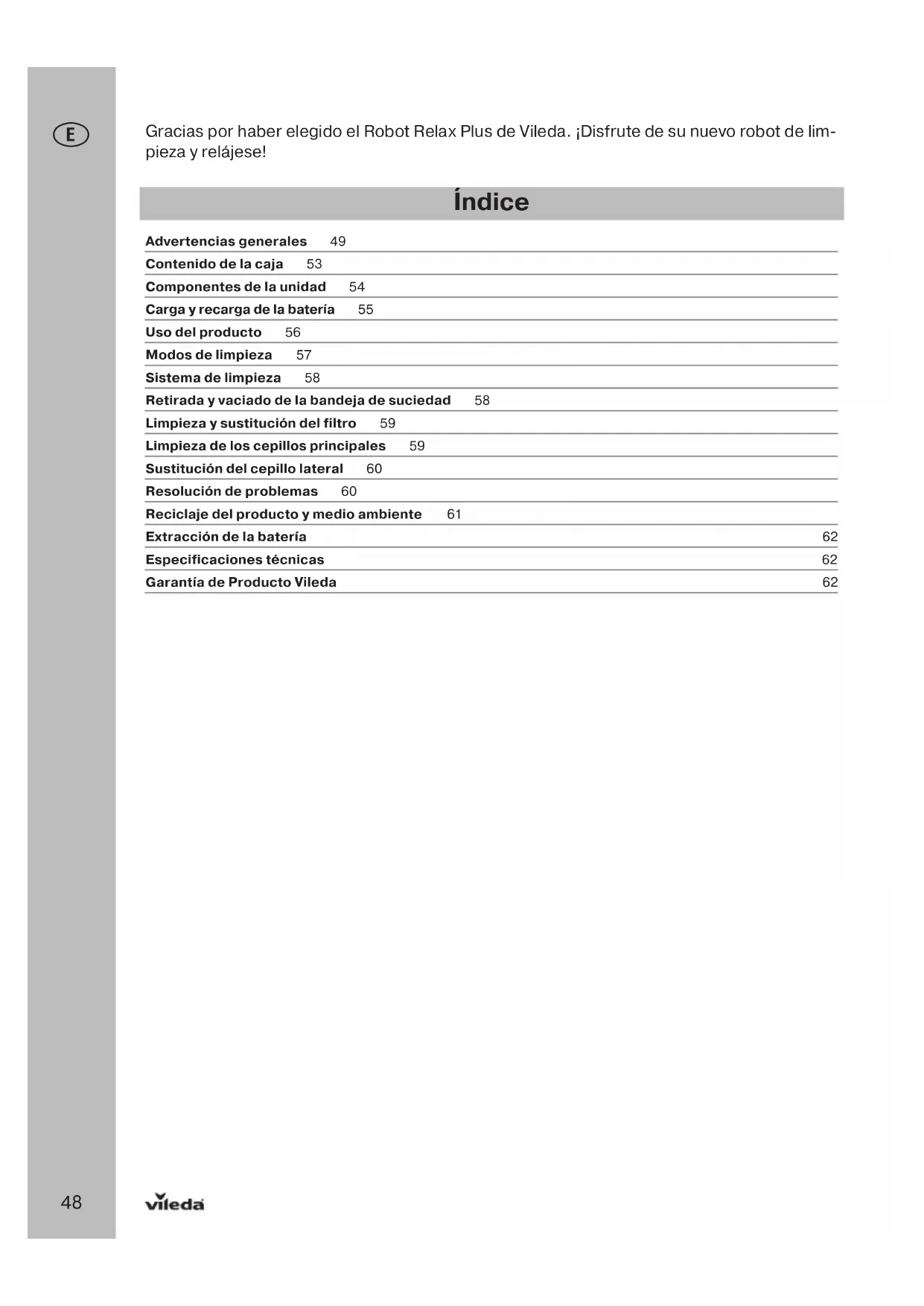 Gracias por haber=elegido el Robot Relax Plus de Vileda. Disfrute de su nuevo robot de limpieza y relajese!