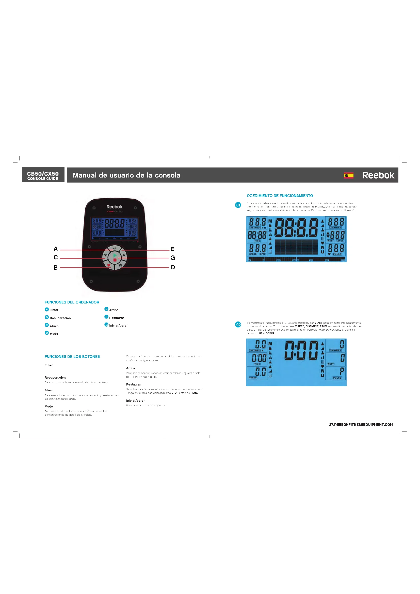 Encuentra gratis el manual del aparato One GX50 Reebok en formato PDF.