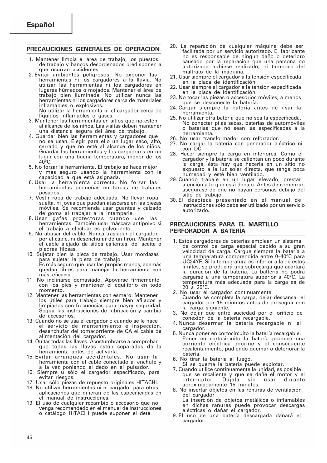 17. Usar sólo piezas de repuesto originales HITACHI.