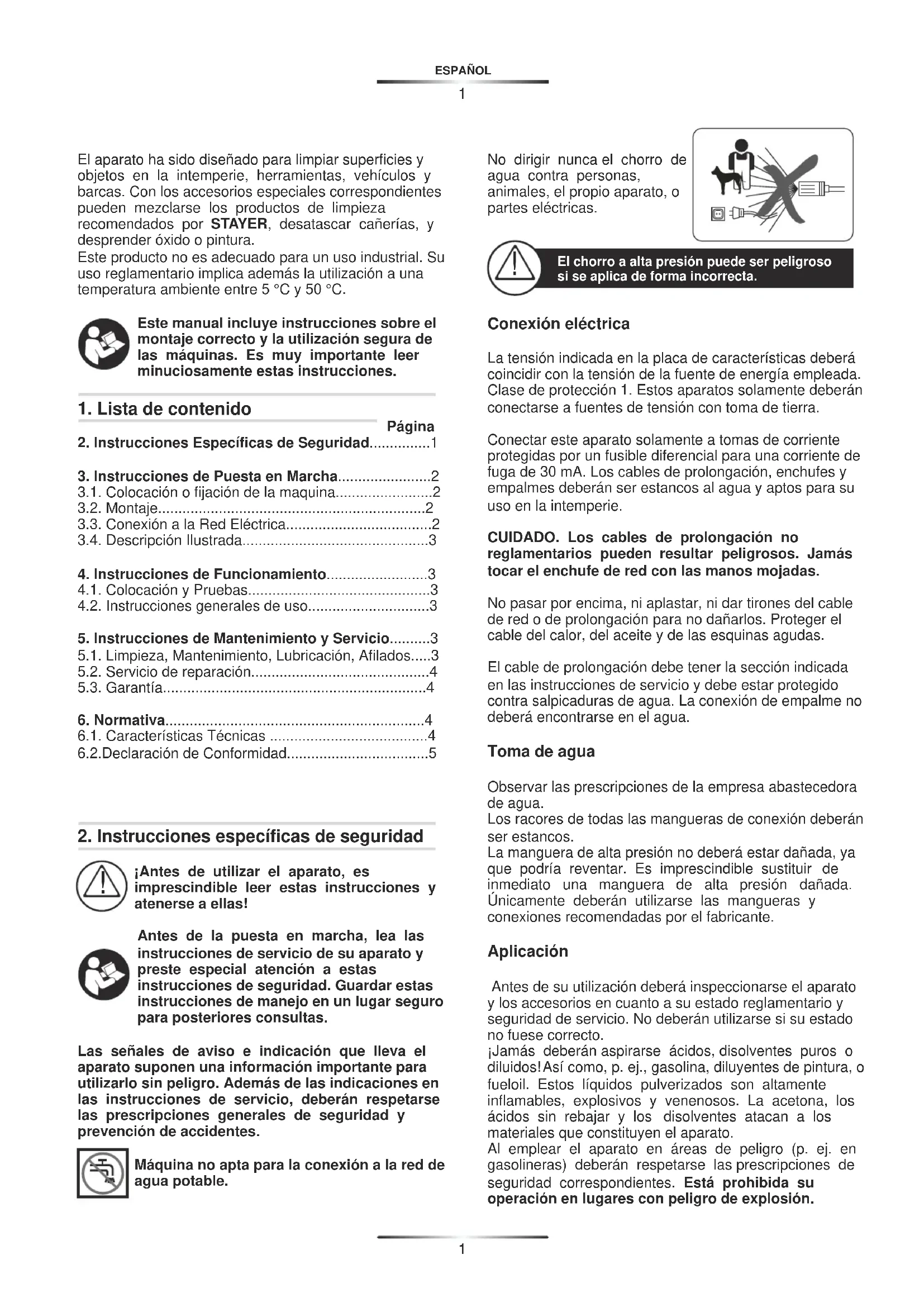 Instrucciones Específicas de Seguridad......1