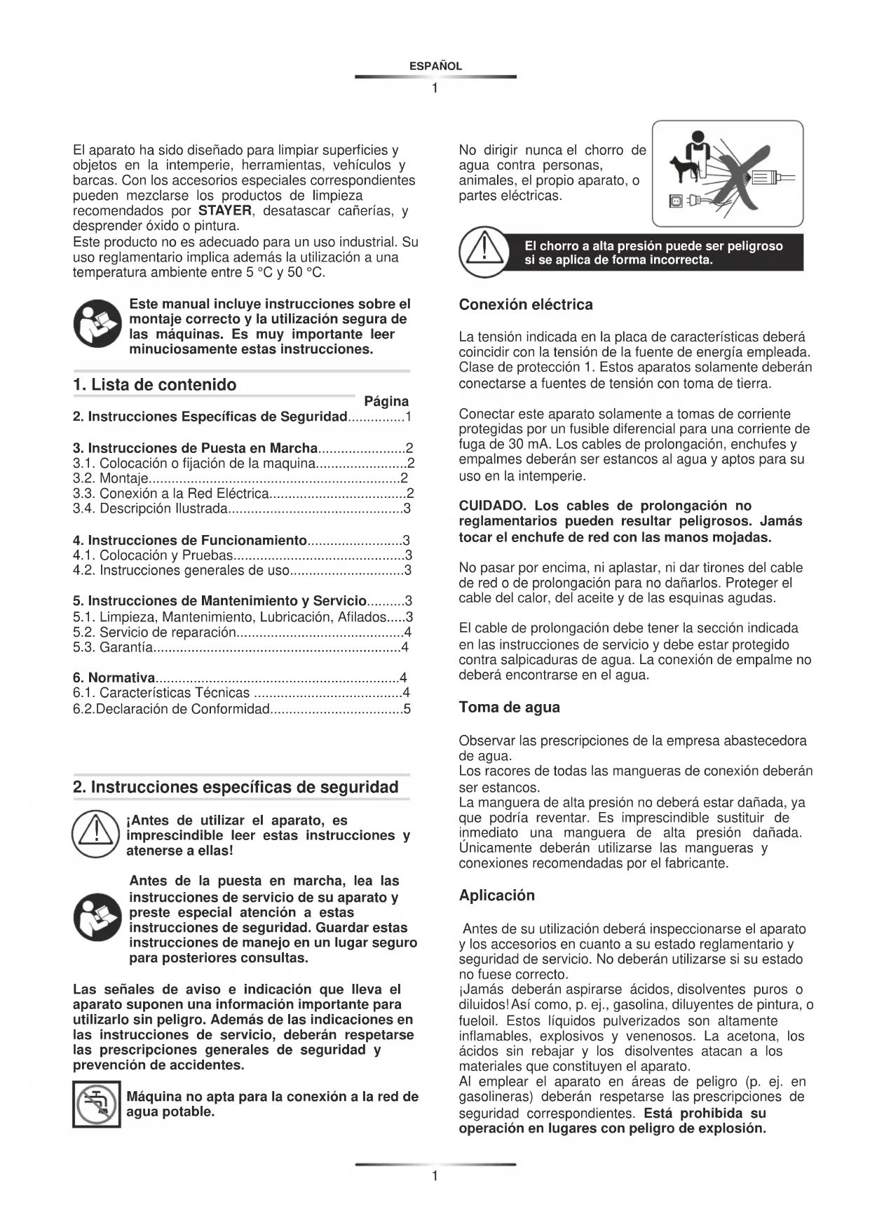- Antes de comprobar, limpiar y manipular en el aparato Las reparaciones deberán realizarse solamente por un taller de servicio de la marca STAYER.