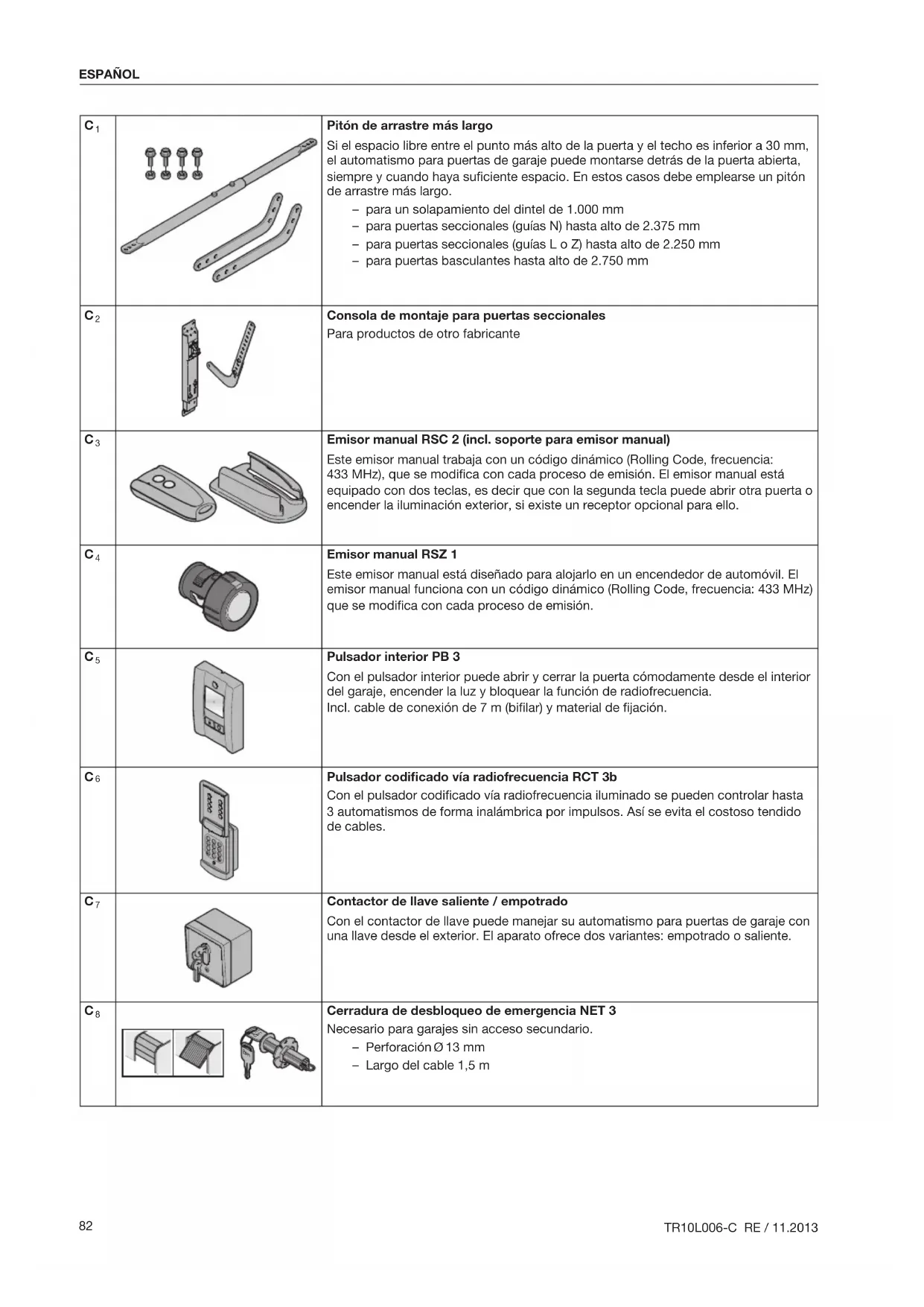 - C Complementos para el automatismo para puertas de garaje p. 82