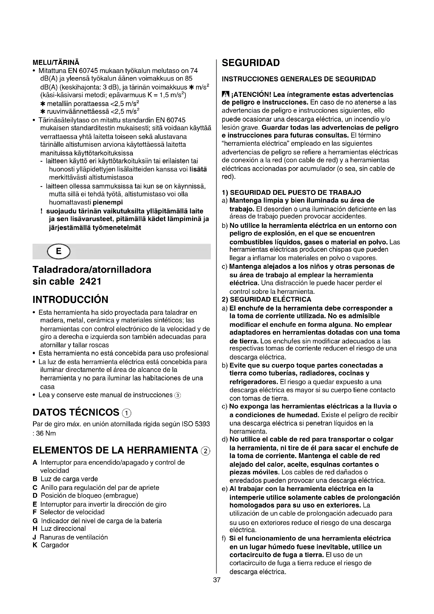 Taladradora/atornilladora sin cable 2421 INTRODUCCIÓN