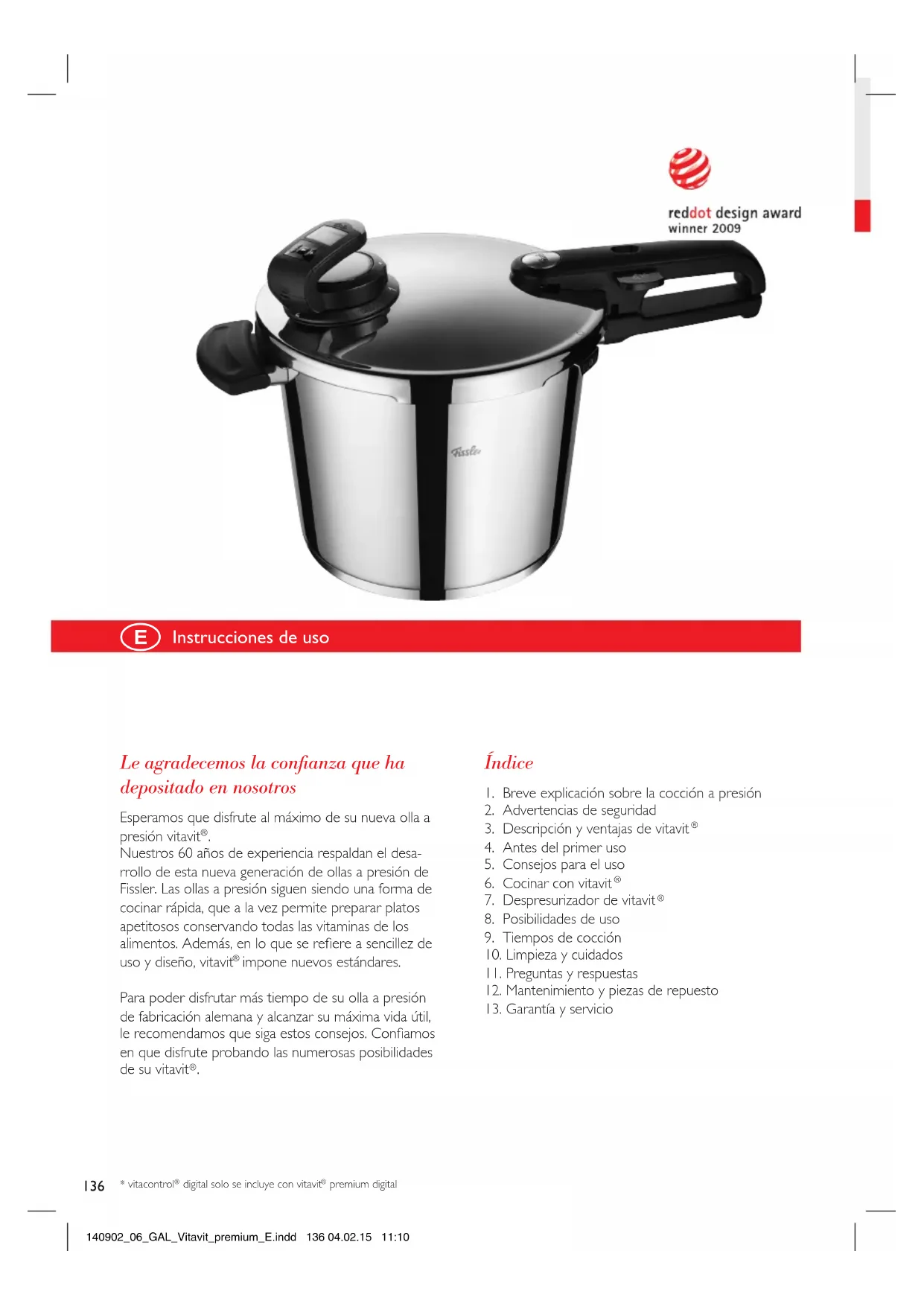 MANUAL DE USUARIO Vitavit Premium Digital Fissler
