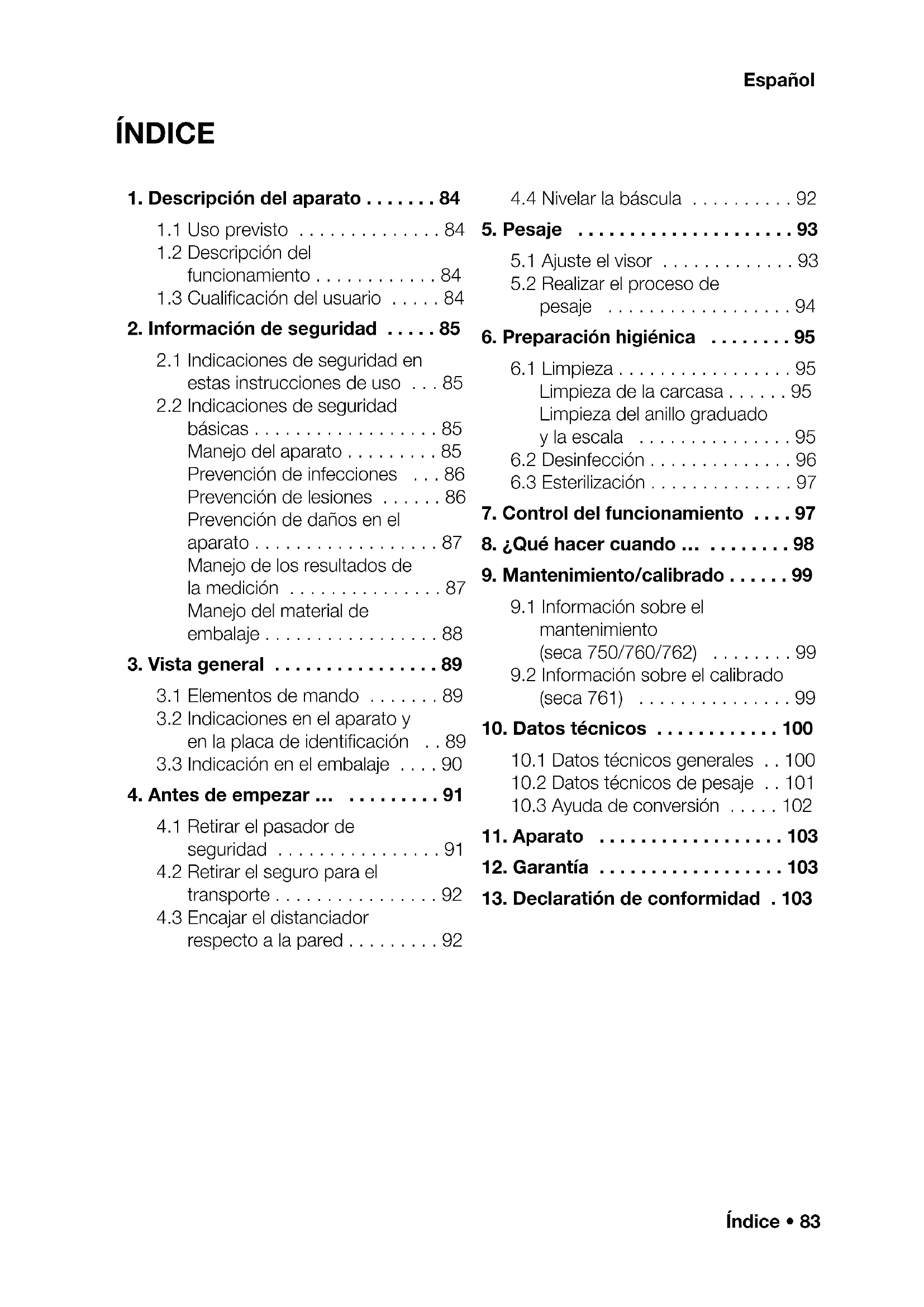 Encuentra gratis el manual del aparato 762 SECA en formato PDF.