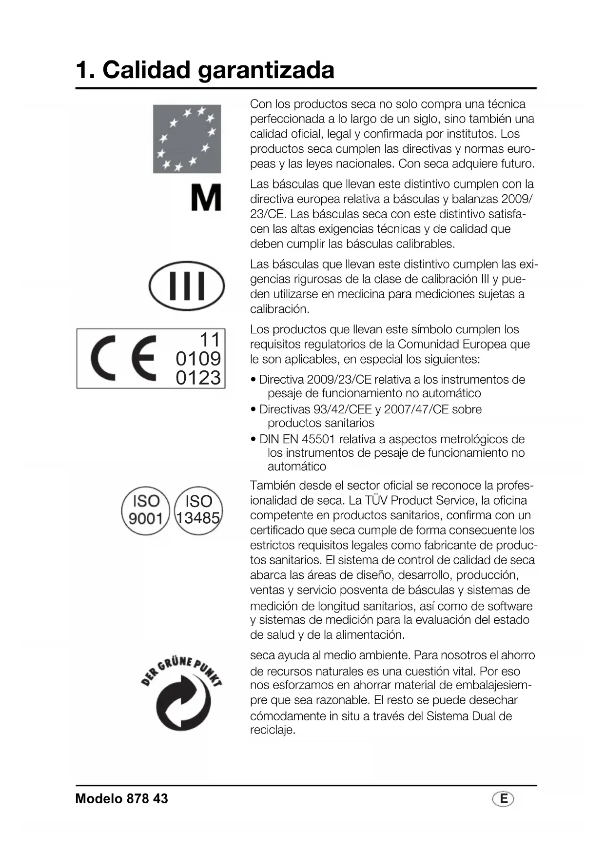 Las básculas que llevan este distintivo cumplen con la directiva europea relativa a básculas y balanzas 2009/23/CE. Las básculas seca con este distintivo satisfa-cen las altas exigencias técnicas y de calidad que deben cumplir las básculas calibrables.