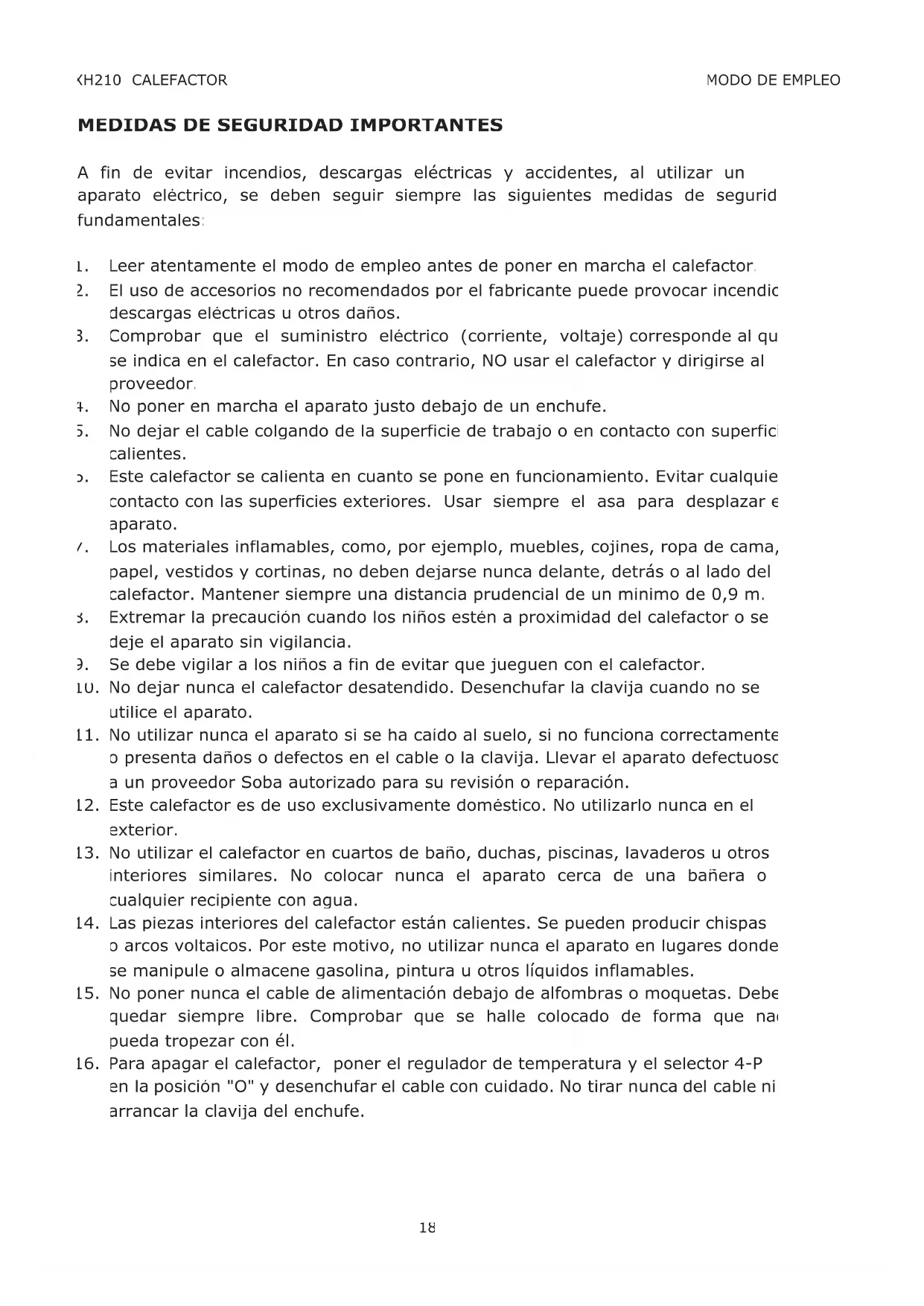 No dejar nunca el calefactor desatendido. Desenchufar la clavija cuando no se utilice el aparato.