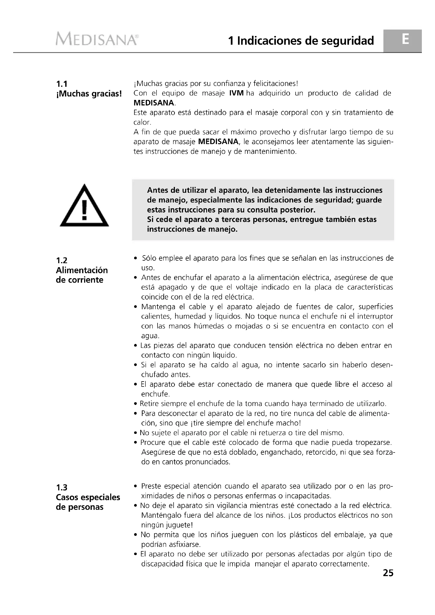- Los masajes con MEDISANA IVM no sustituyen los tratimientos Médicos ni fisioterapiéticos.