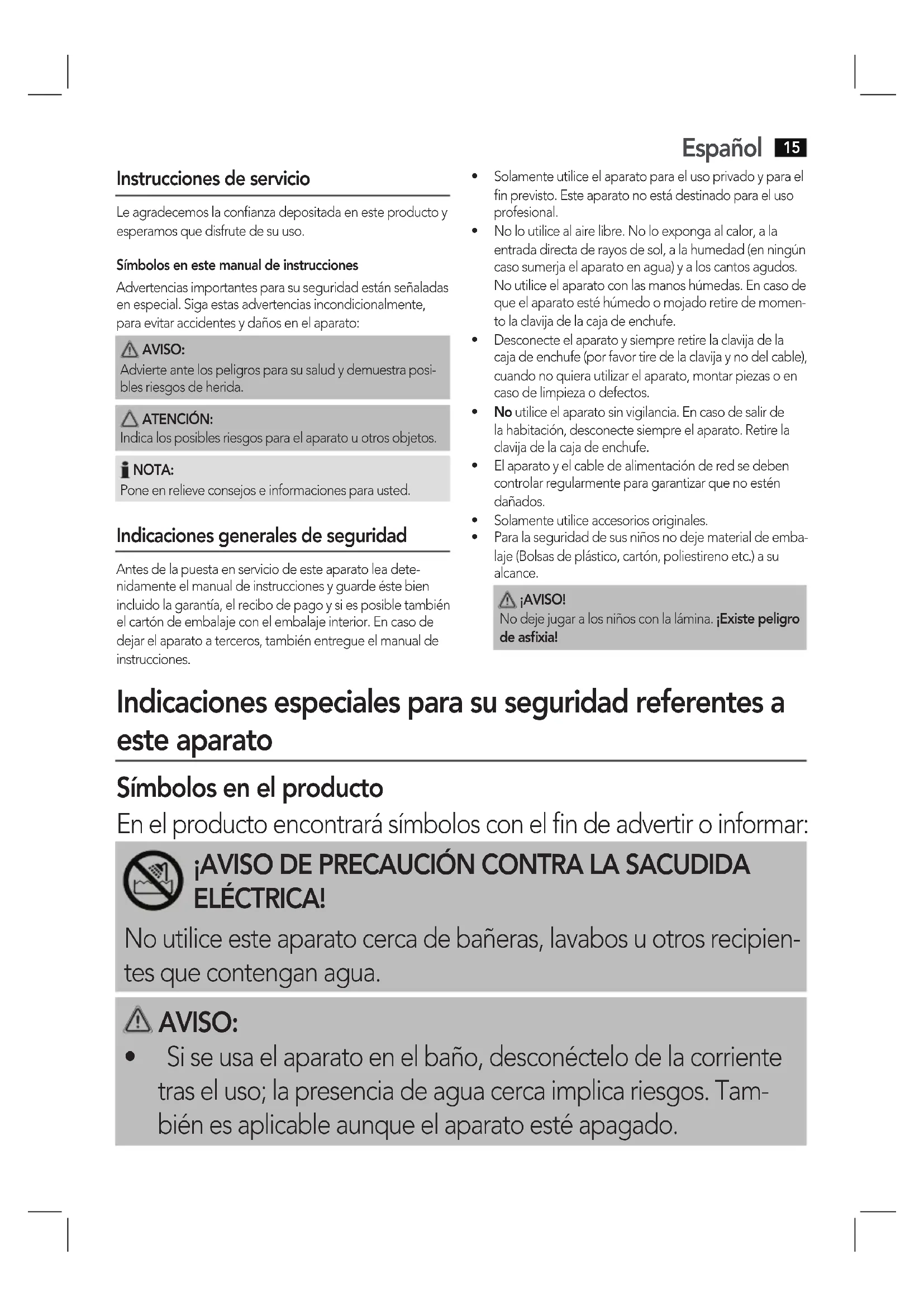 Antes de la puesta en servicio de este aparato lea detenidamente el manual de instrucciones y guarde éste bien incluido la garantía, el recibo de pago y si es posible también el cartón de embalaje con el embalaje interior. En caso de dejar el aparato a terceros, también entregue el manual de instrucciones.