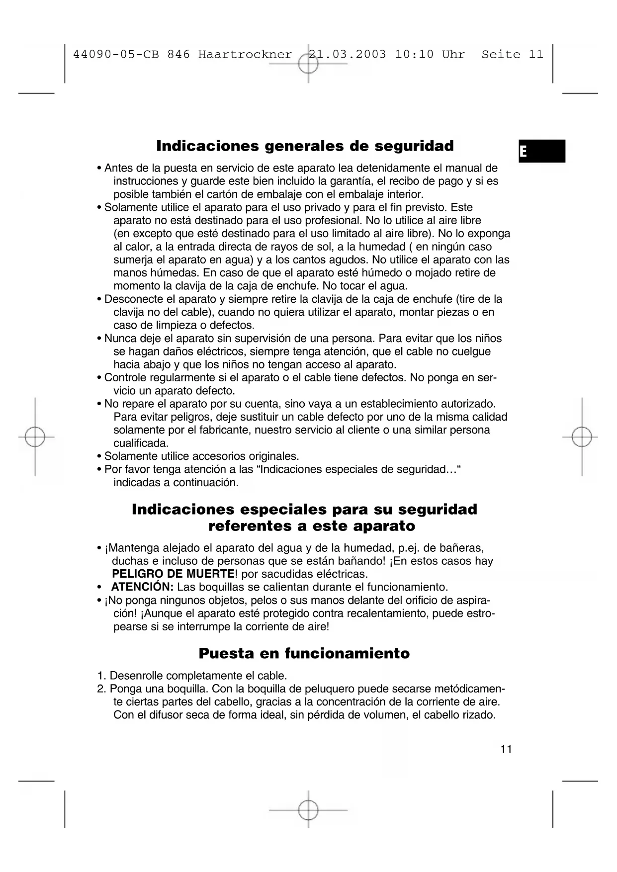 44090-05-CB 846 Haartrockner 21.03.2003 10:10 Uhr Seite 113. Introduzca la clavija en una caja de enchufe de contacto de protección 230 V, 50 Hz e instalada por la norma.