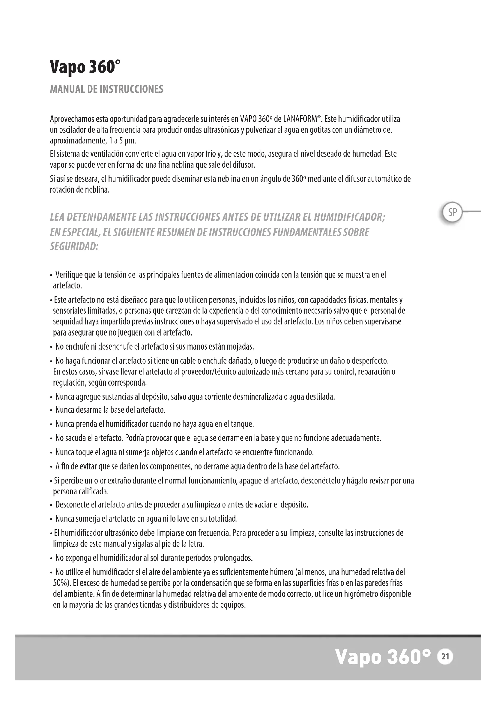 MANUAL DE USUARIO Vapo 360 LANAFORM