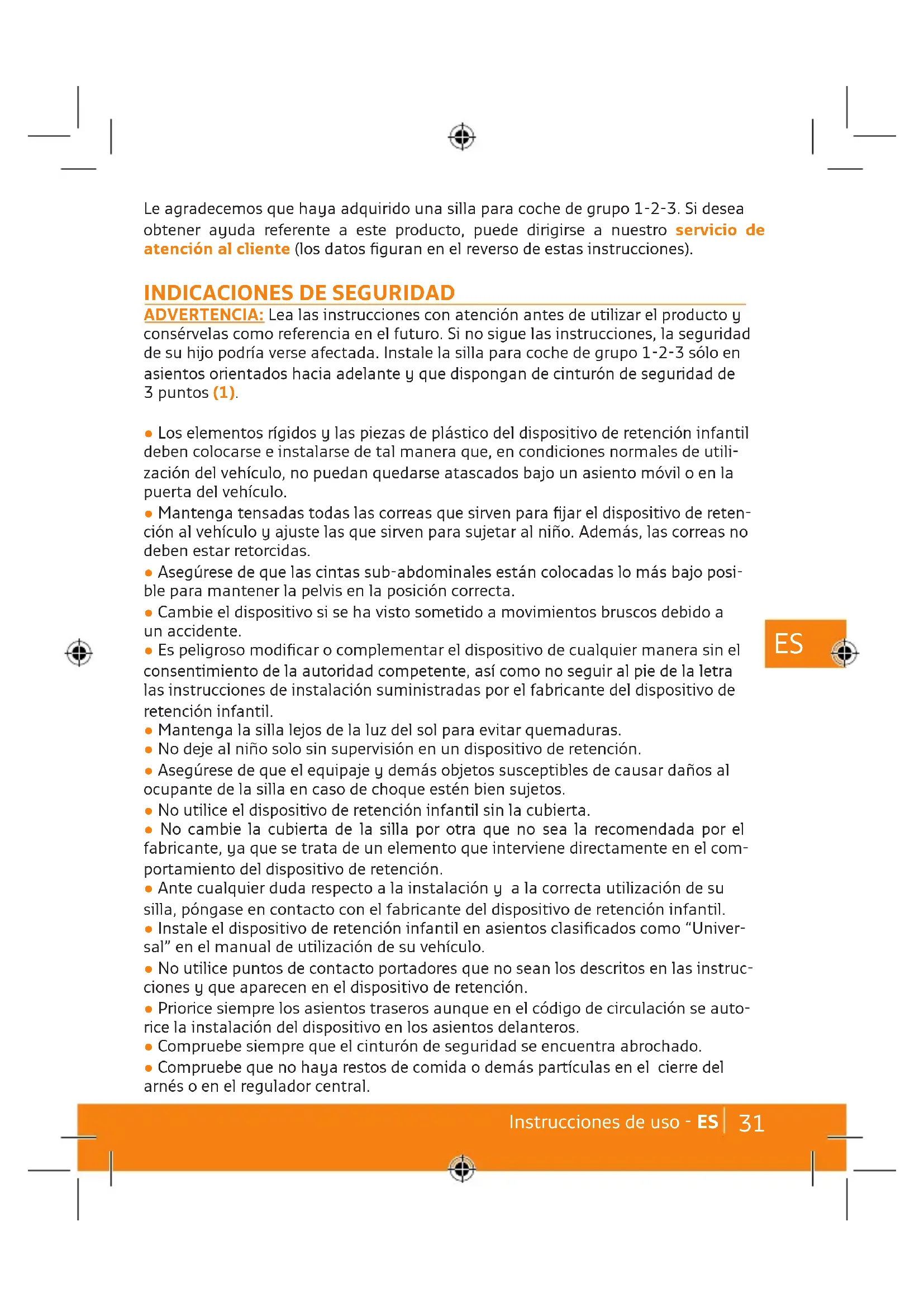 Le agradecemos que haya adquirido una silla para coche de grupo 1-2-3. Si desea obtener ayuda referente a este producto, puede dirigirse a nuestro servicio de atención al cliente (los datos figuran en el reverso de estas instrucciones).