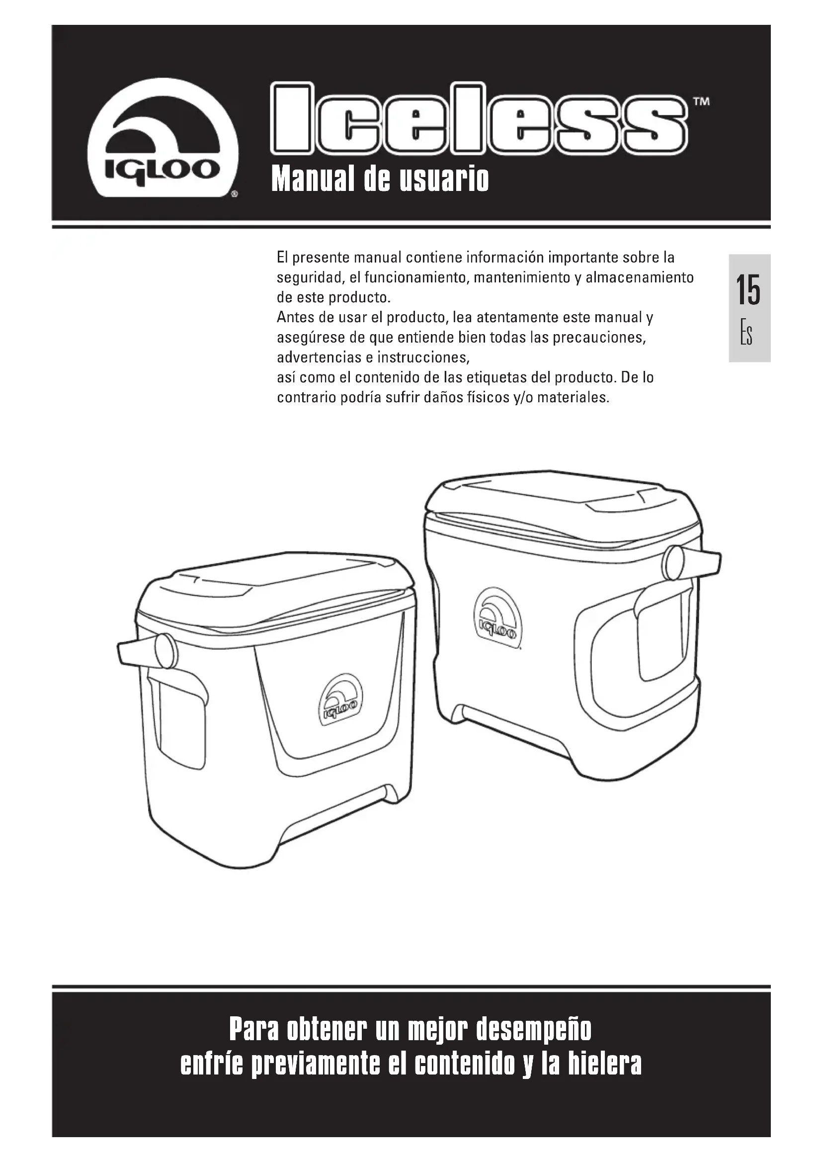Conserve estas instrucciones para futuras consultas. Para reducir el riesgo de incendio, descarga eléctrica y/o daños personales durante la utilización de un electrodoméstico deben seguirse las medidas básicas de seguridad, entre las que se incluyen las siguientes:1. Para evitar posibles descargas eléctricas, no introduzca el cable, el enchufe, ni la Iceless en agua o cualquier otro líquido.2. No exponga la unidad a la lluvia. Si se utiliza la unidad sobre superficies húmedas podría producirse una descarga eléctrica. No manipule el enchufe con las manos mojadas.3. Es necesario extremar la vigilancia cuando la hielera sea utilizada por niños o cerca de éstos.4. Desenchufe la Iceless cuando no se vaya a utilizar y antes de limpiarla.5. Utilice este producto solamente para lo que ha sido diseñado y del modo descrito en el presente manual. Deben utilizarse exclusivamente los accesorios y complementos recomendados por Igloo.6. Nunca haga funcionar un electrodoméstico cuyo cable o enchufe presente daños o después de que haya presentado fallos de funcionamiento o sufrido cualquier tipo de daño. Lleve el electrodoméstico a un centro de servicio técnico autorizado para que lo examinen, reparen o hagan los ajustes necesarios.7. Para reducir el riesgo de incendios o descargas eléctricas, no retire ninguna de las cubiertas de servicio. La Iceless