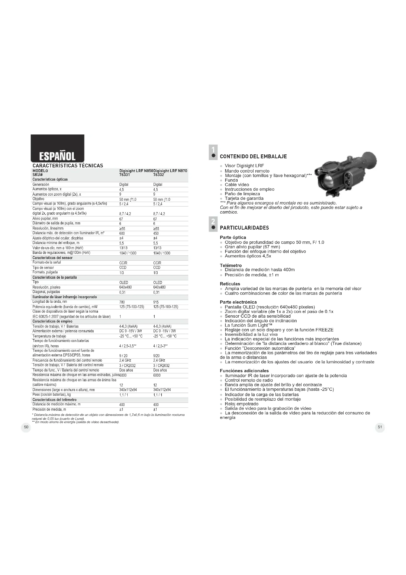 | MODELOSKU# | Digisight LRF N850 | Digisight LRF N870 |