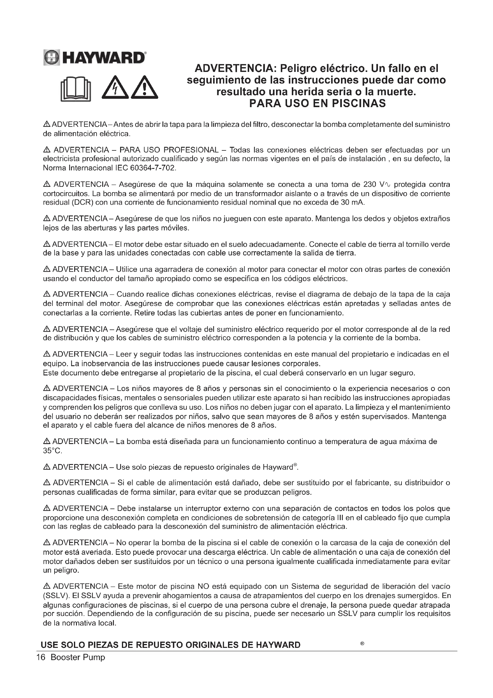 Encuentra gratis el manual del aparato Booster HAYWARD en formato PDF.